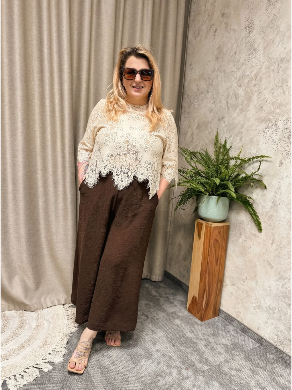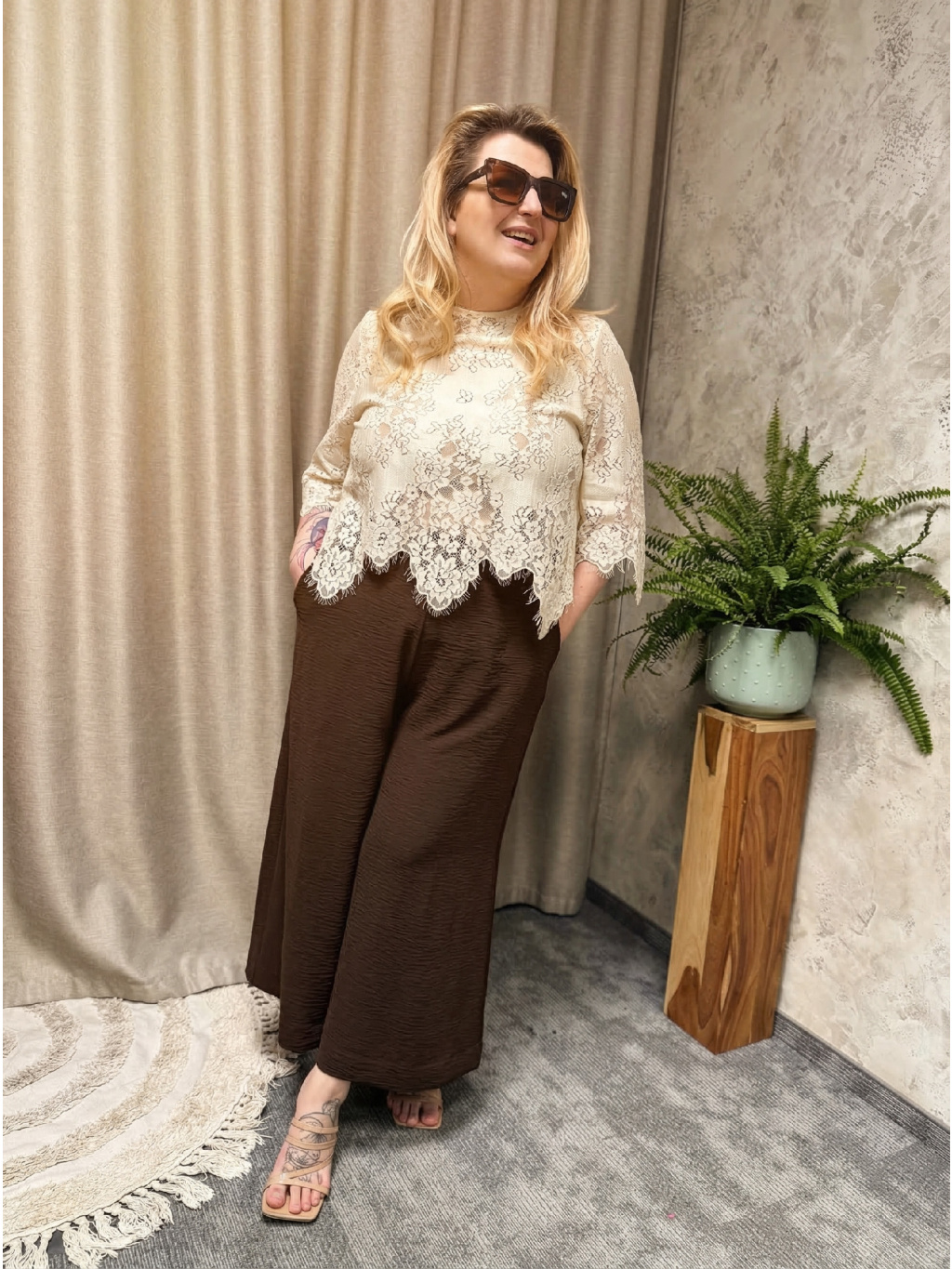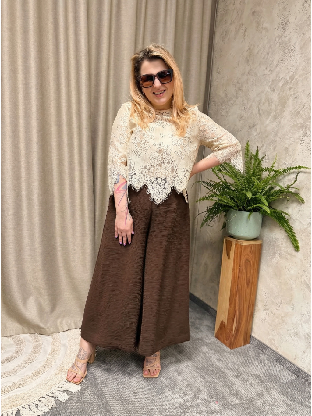 Culotte kalhoty v odstínu Brown přinášejí klidnou eleganci v podobě hřejivé, čokoládově hnědé barvy, která působí sofistikovaně a nadčasově. Volný, rovný střih a pohodlná guma v pase zajistí, že kalhoty krásně sedí a přirozeně kopírují siluetu bez nepříjemného stažení.