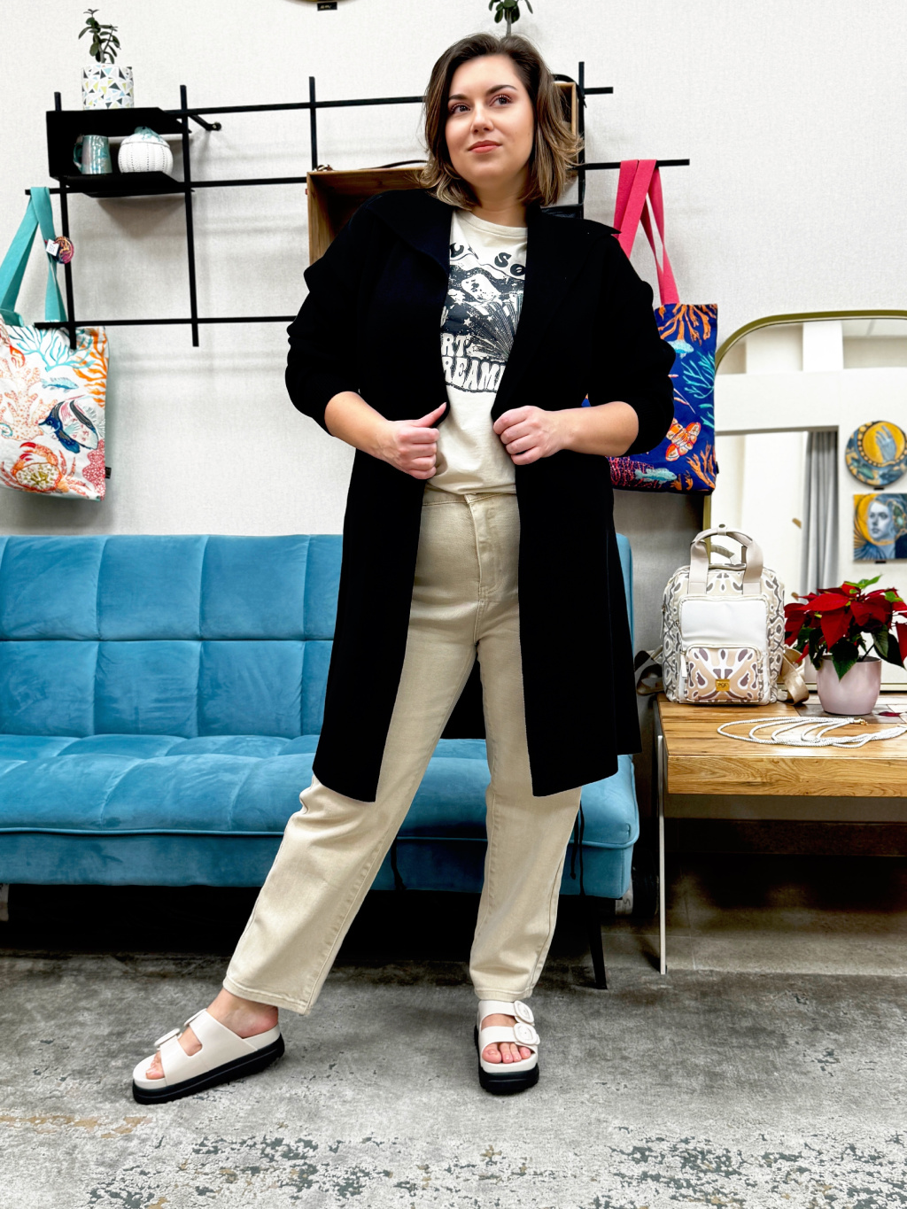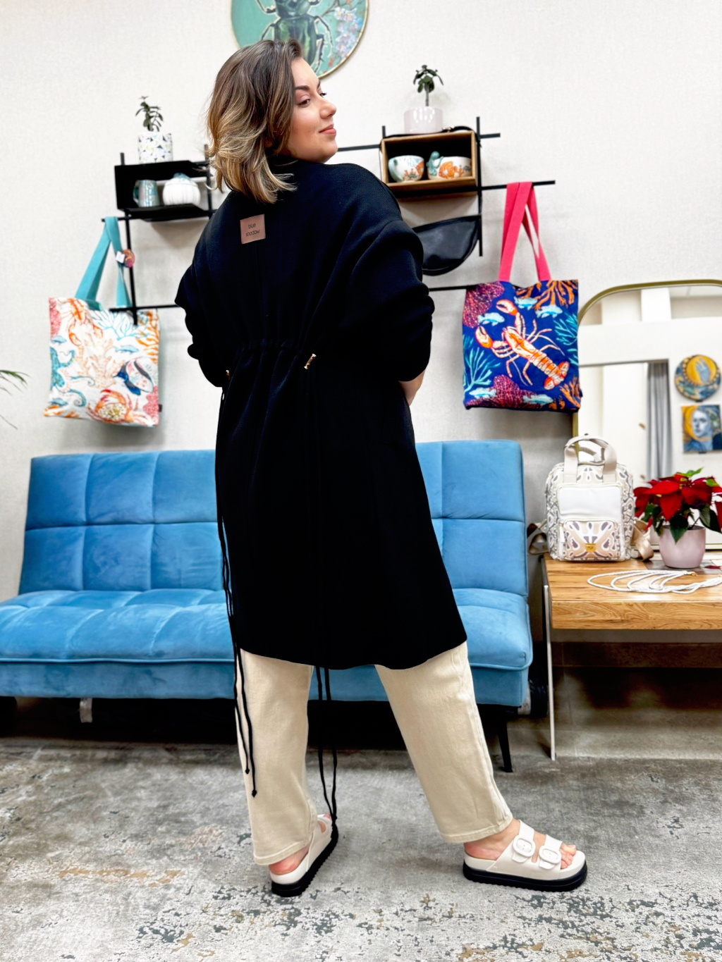 Kardigan Huggo od značky Blue Shadow je esencí pohodlí a stylu v jednom. Je vyroben z neskutečně měkkého úpletu, který vás příjemně zahřeje během chladnějších dnů, ale díky své lehkosti zůstává ideální i na přechodná období. Má propracovaný volnější střih s možností stahování v pase na zádech, což umožňuje kardigan snadno přizpůsobit postavě a vytvořit ženskou siluetu podle potřeby. Dlouhá délka spolu s nápadnými manžetami a klopovým límcem působí elegantně a zároveň ležérně. Dostupný je v několika krásných odstínech, takže si každý snadno najde svou oblíbenou barvu. Huggo je perfektní volbou pro vrstvení a stylové doladění jakéhokoliv outfitu.