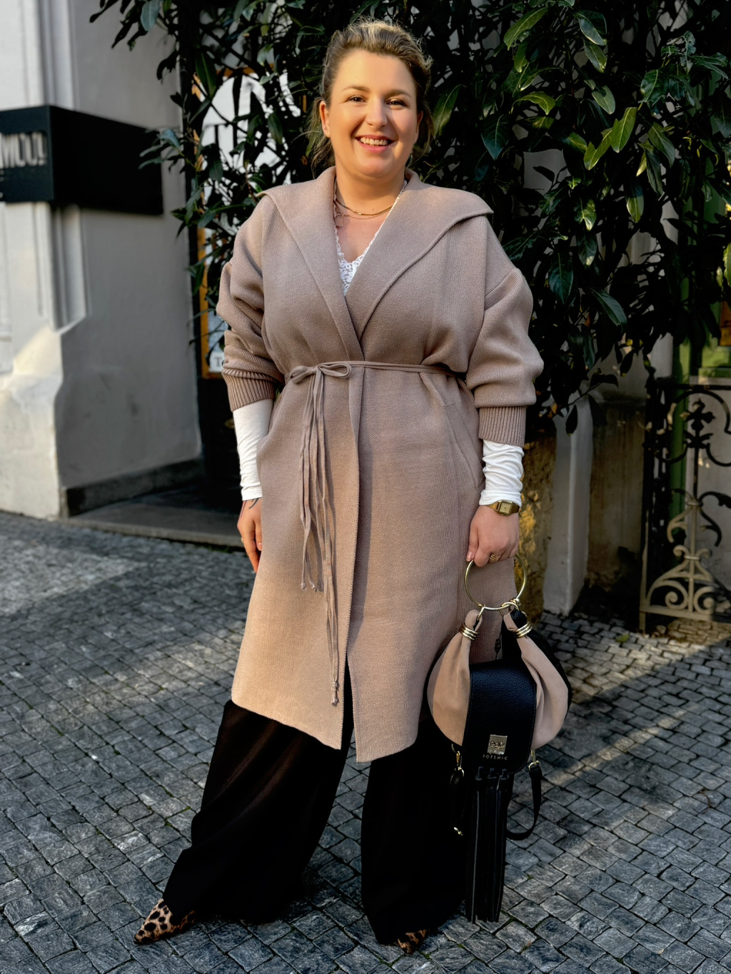 Kardigan Huggo od značky Blue Shadow je esencí pohodlí a stylu v jednom. Je vyroben z neskutečně měkkého úpletu, který vás příjemně zahřeje během chladnějších dnů, ale díky své lehkosti zůstává ideální i na přechodná období. Má propracovaný volnější střih s možností stahování v pase na zádech, což umožňuje kardigan snadno přizpůsobit postavě a vytvořit ženskou siluetu podle potřeby. Dlouhá délka spolu s nápadnými manžetami a klopovým límcem působí elegantně a zároveň ležérně. Dostupný je v několika krásných odstínech, takže si každý snadno najde svou oblíbenou barvu. Huggo je perfektní volbou pro vrstvení a stylové doladění jakéhokoliv outfitu.