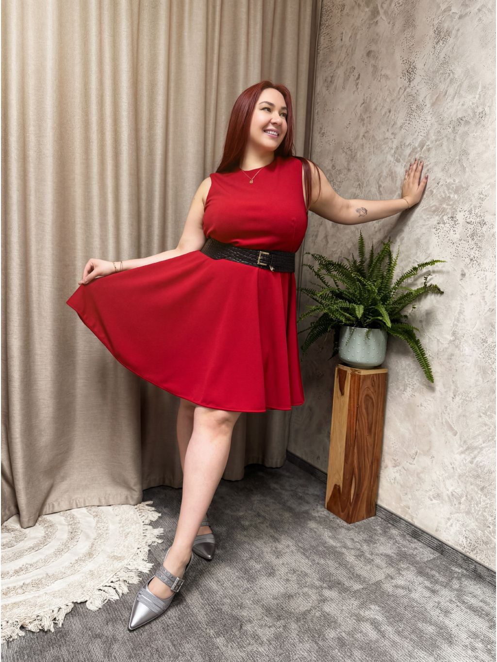 Sytě červená, která přitahuje pohledy na první dobrou, v kombinaci s jednoduchou, ale promyšlenou linií vytváří z těchto mini šatů Mat Fashion kousek, ve kterém se snadno cítíš sexy i sebevědomě – bez zbytečných efektů navíc. Bez rukávů, se zakulaceným výstřihem a áčkovou, lehce rozšířenou sukní lichotí křivkám, aniž by obepínaly – látka se při chůzi hezky vlní a působí hravě, ale stále elegantně.