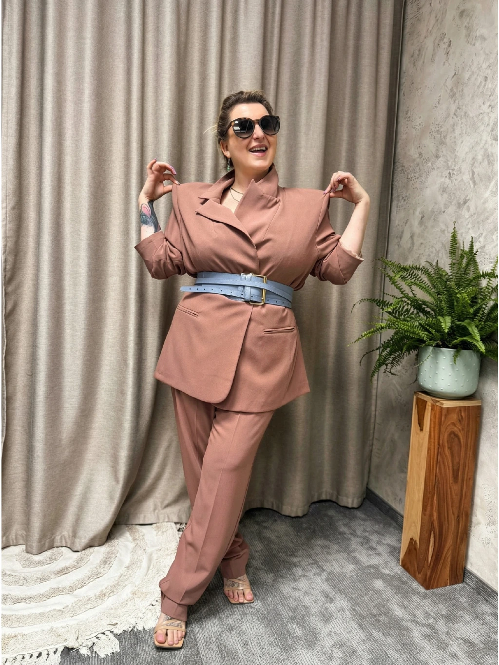 Nude barva je univerzální, snadno kombinovatelná a vytváří jemný, sofistikovaný dojem. Skvěle ladí s bílou, černou, hnědou, pastelovými tóny i výraznějšími vršky – stačí přidat košili, top nebo sako a máš okamžitě kompletní outfit.