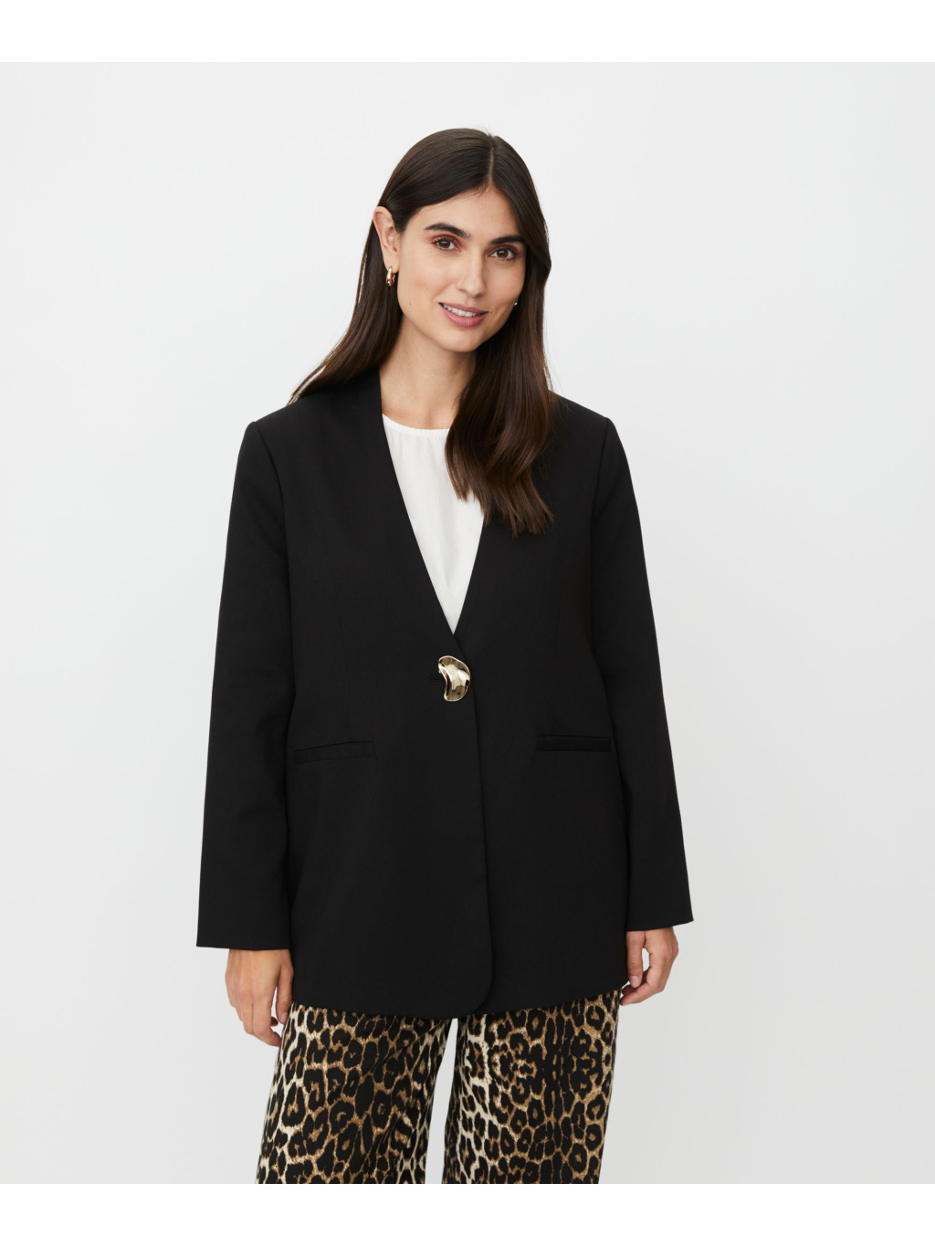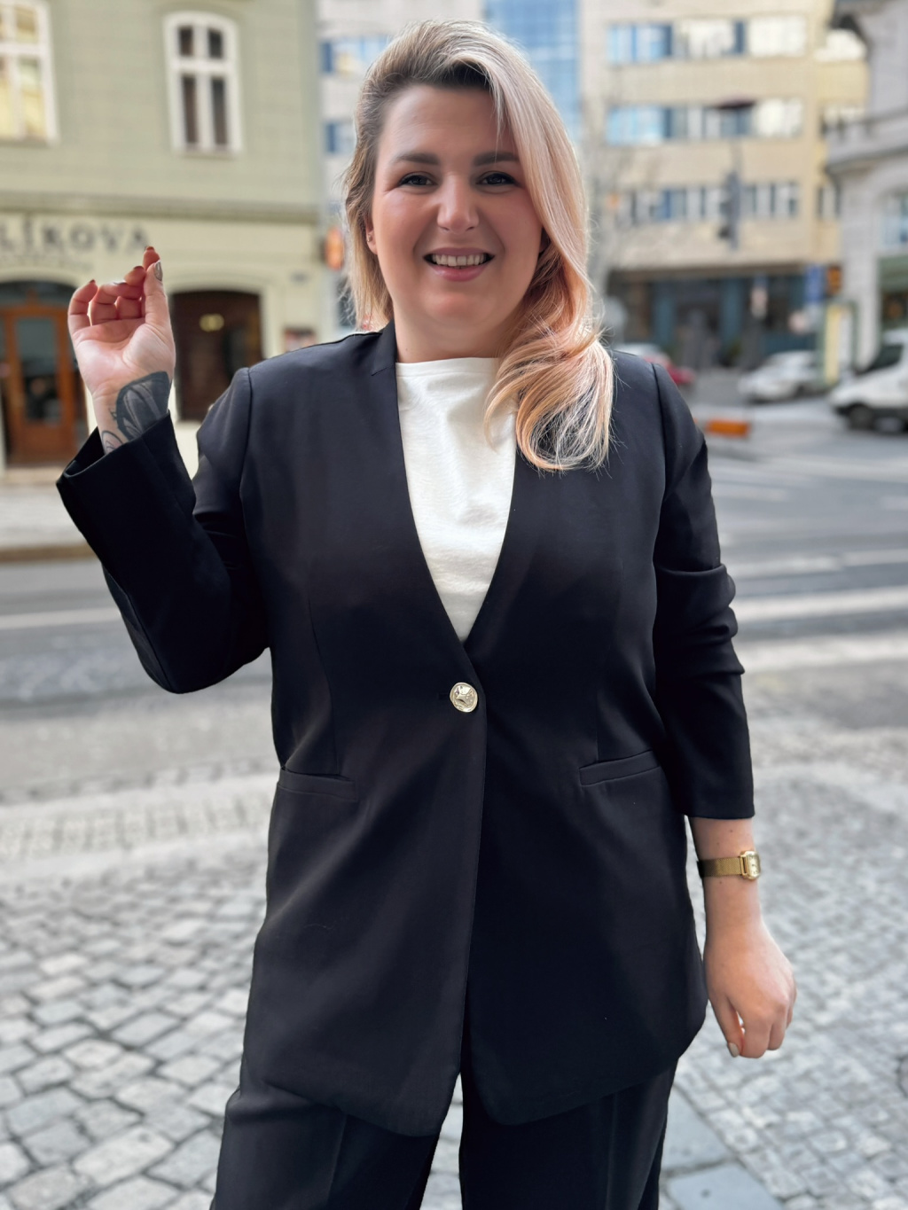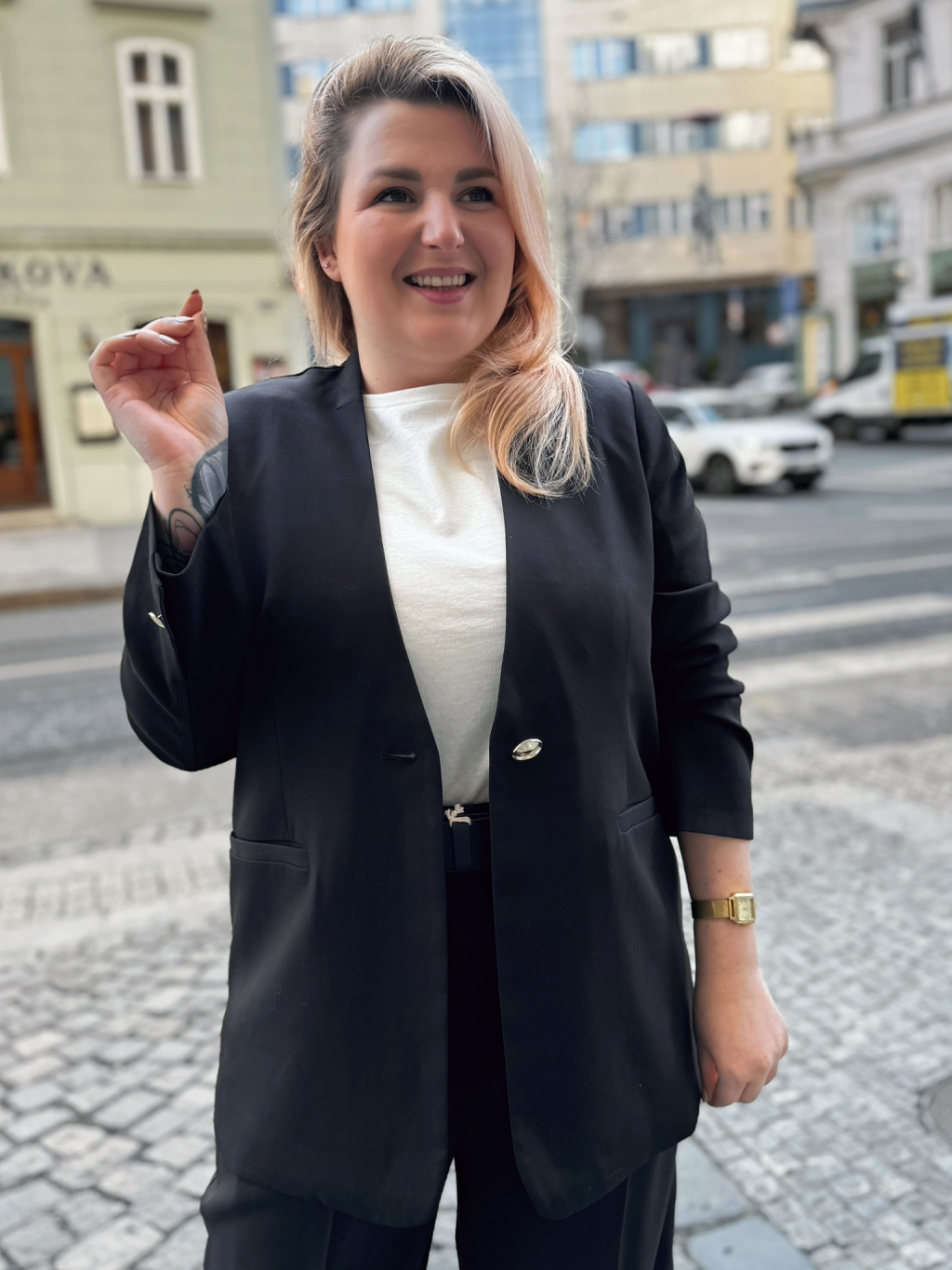 Sako Jettami od Masai je nadčasový a velmi univerzální kousek, který se stane pevným základem šatníku. Příjemný materiál s jemnou podšívkou zajišťuje komfort při celodenním nošení, zatímco zapínání na knoflík a praktické kapsy dodávají saku čistý a elegantní vzhled. Černá barva působí sofistikovaně a profesionálně, snadno ji zkombinujete s kalhotami, sukní i šaty. Sako se hodí do práce, na schůzky i pro elegantní městské outfity a vždy vytvoří upravený a sebevědomý dojem.