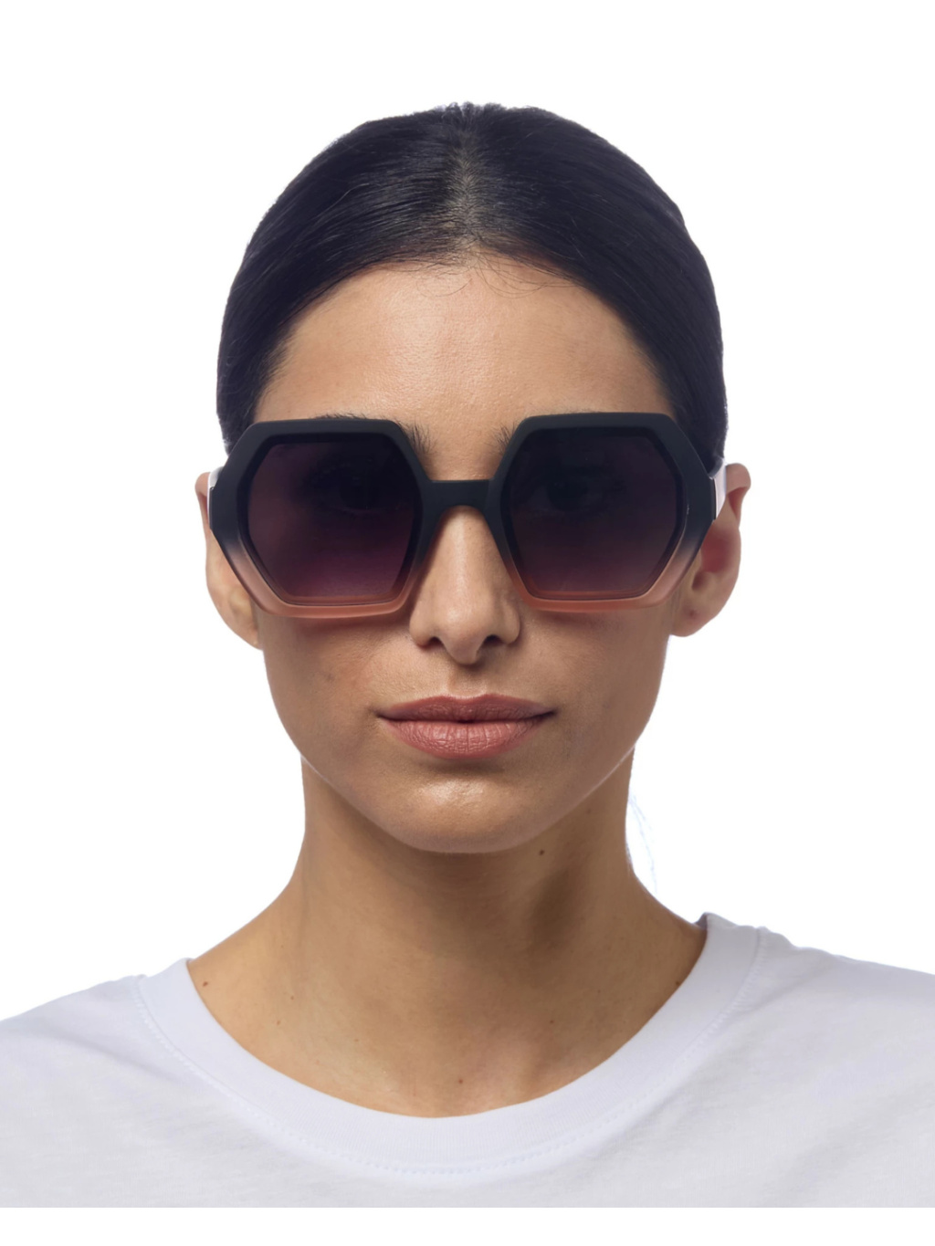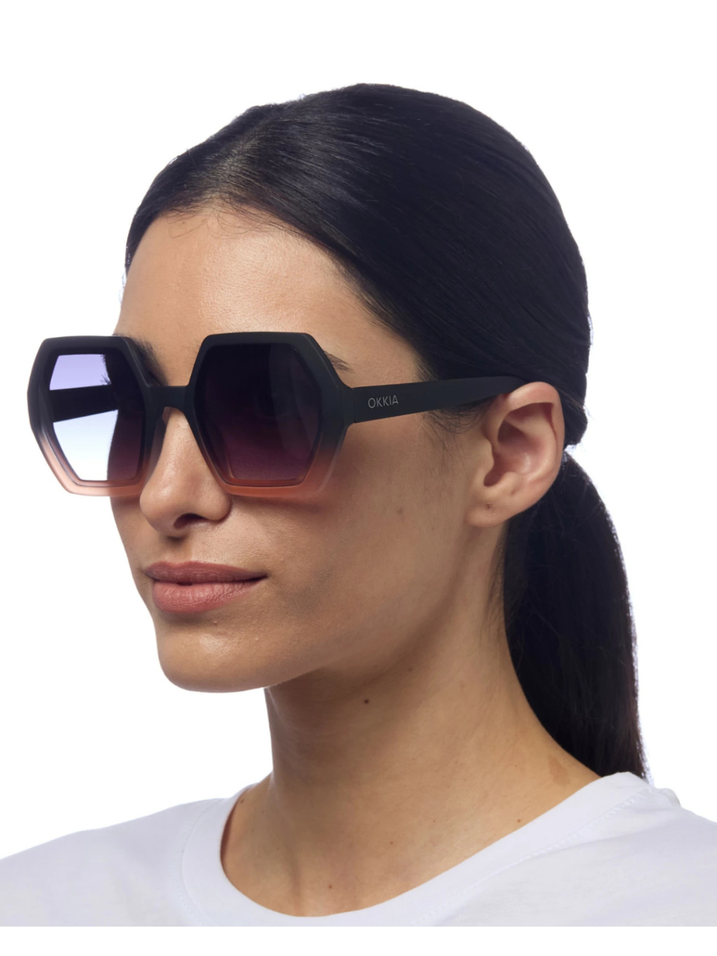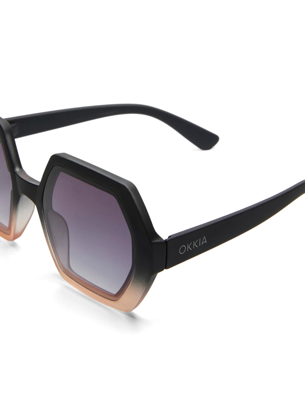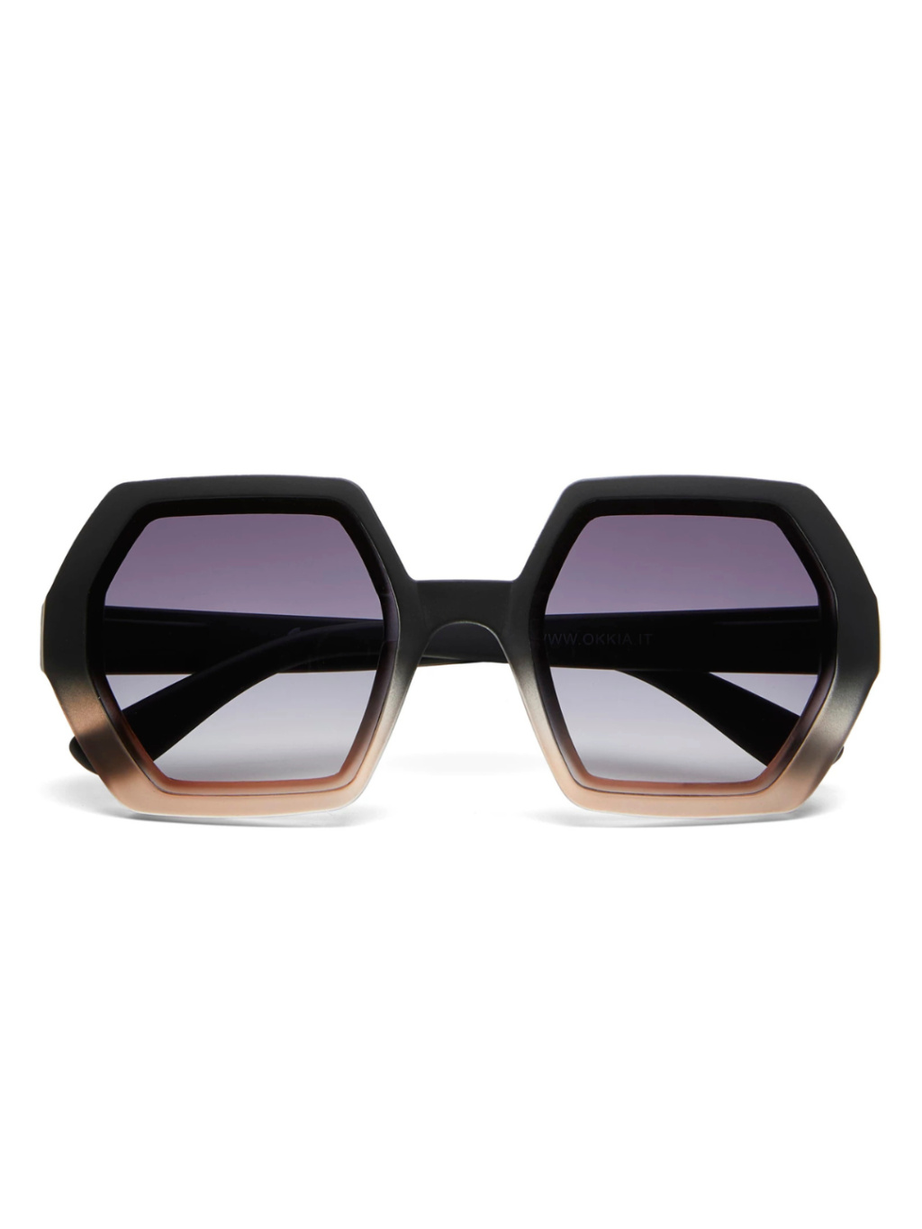EMMA jsou sluneční brýle, které rozhodně nezapadnou. Jejich šestiúhelníkový tvar, měkký soft-touch povrch a překrývající se čočky vytvářejí moderní a výrazný design. Černý rámeček spolu s jemným černým gradientem skel působí elegantně a odvážně zároveň.