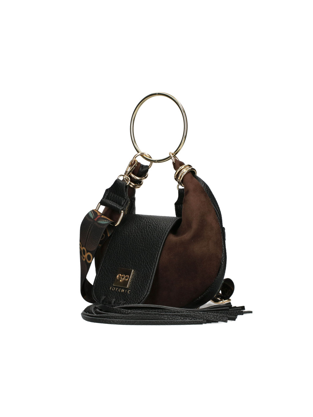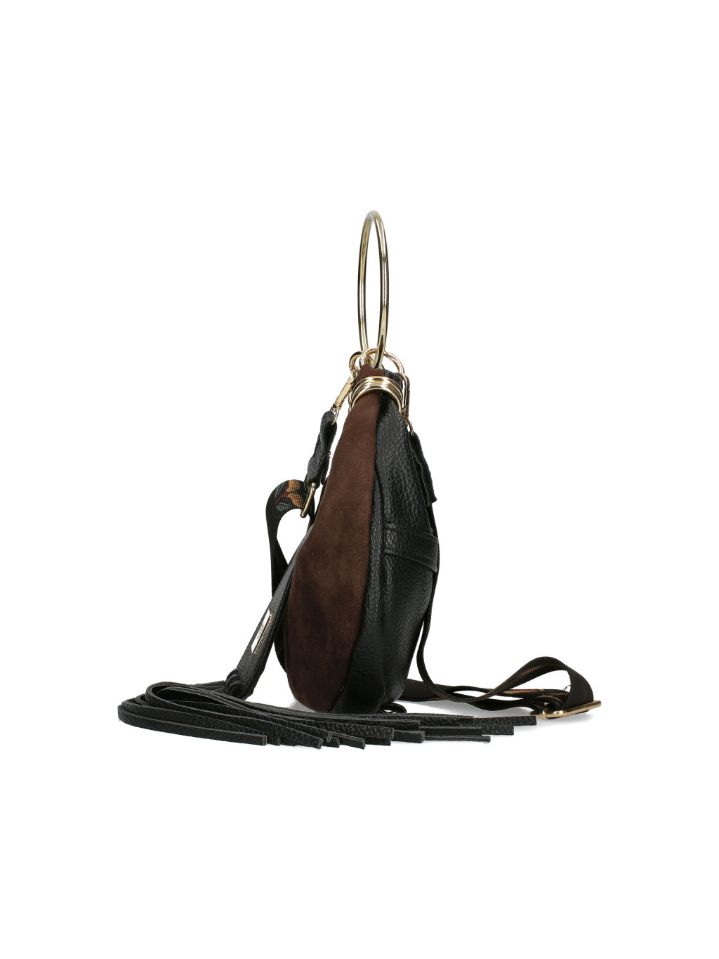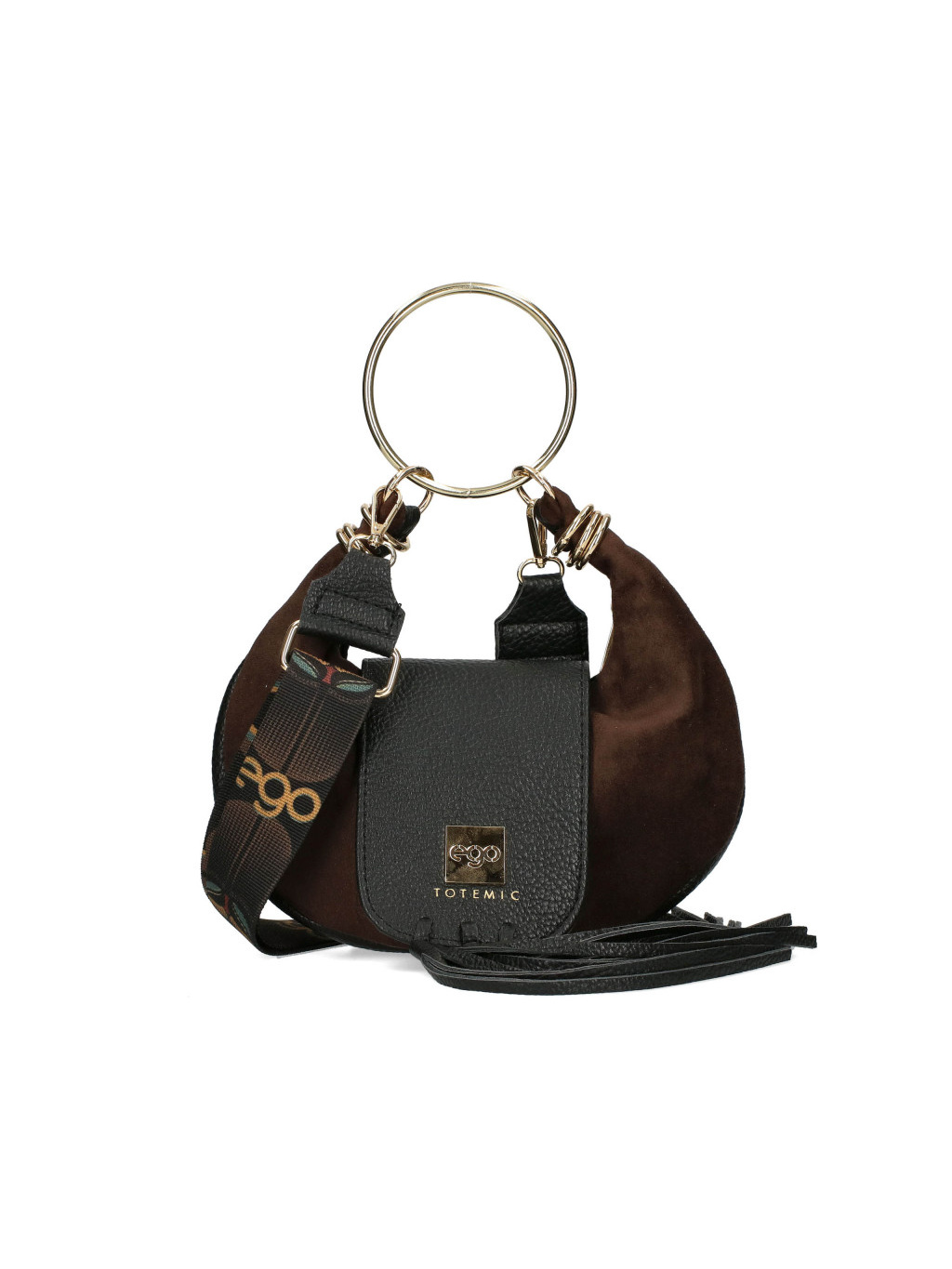 Model Ring je kabelka, která si tě získá na první pohled – svým tvarem, kombinací materiálů i chytrým řešením detailů. Je vyrobená z kvalitní kombinace strukturované a broušené kůže, které spolu vytvářejí luxusní kontrast. Zlaté kovové kroužky na uchycení dodávají kabelce šmrnc a zároveň fungují jako stylový doplněk – můžeš ji nosit elegantně v ruce, nebo si připnout široký potištěný popruh a proměnit ji v originální crossbody.