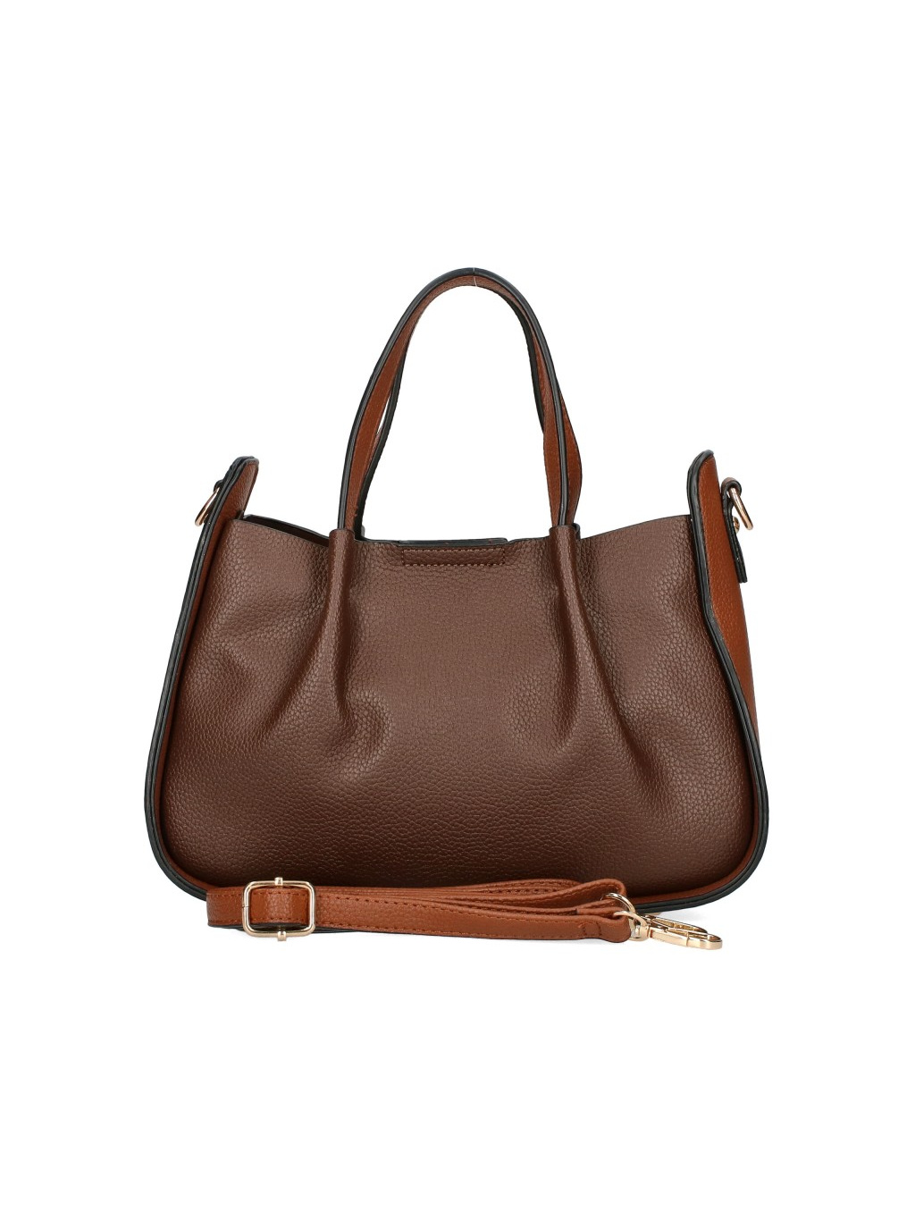 ELEGANTNÍ PROSTORNÁ KABELKA COFFEE je nadčasový model v elegantním hnědém odstínu s kontrastními bočními panely, který působí sofistikovaně a velmi žensky. Jemně strukturovaný povrch materiálu dodává kabelce luxusní vzhled a zároveň zajišťuje odolnost při každodenním nošení.