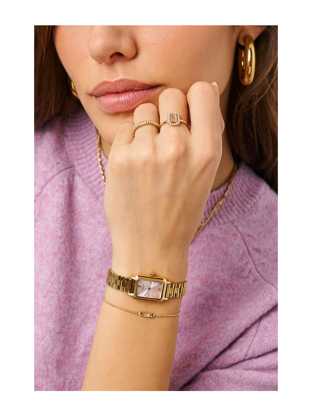 Elegantní dámské hodinky My Jewellery ve zlatém provedení jsou stylovým doplňkem, který podtrhne ženskost a jemný vkus. Obdélníkový ciferník v něžném růžovém odstínu vytváří krásnou harmonii se zlatým pouzdrem a kovovým náramkem. Minimalistický design působí luxusně a zároveň velmi moderně, díky čemuž se hodinky snadno kombinují s dalšími šperky i různými styly oblečení. Jsou ideální pro každodenní nošení, pracovní outfit i elegantní společenské příležitosti. Tento model ocení ženy, které hledají jemný, nadčasový a romanticky laděný doplněk