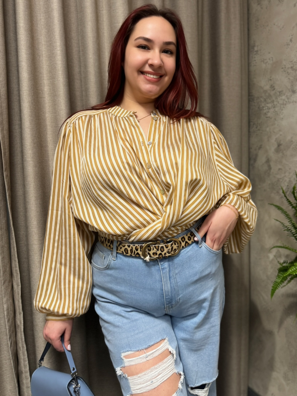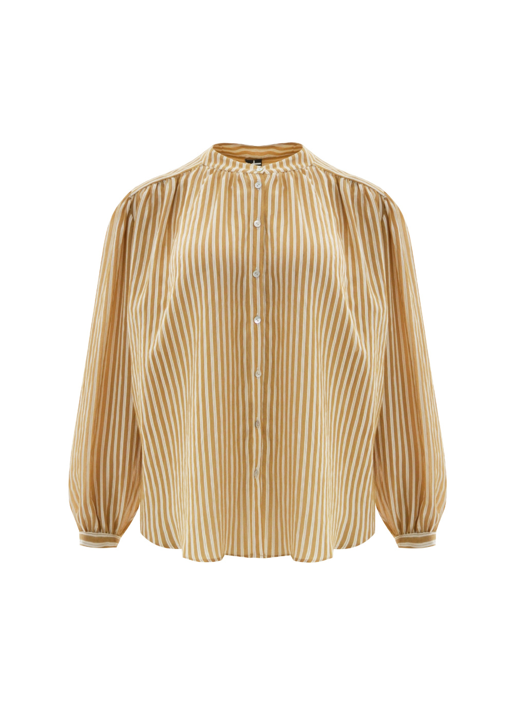 Košile ROSALINA v odstínu karamel zaujme jemným proužkem a přirozeně splývavým vzhledem. Materiál s podílem 80 % viskózy a 20 % polyamidu je na dotek příjemně chladivý, lehce klouzavý a krásně reaguje na pohyb. Celopropínací střih umožňuje variabilní nošení, zatímco balonové rukávy dodávají modelu ženský, lehce romantický charakter.