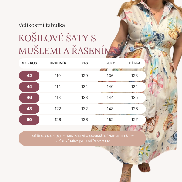 KOŠILOVÉ ŠATY S MUŠLEMI A ŘASENÍM