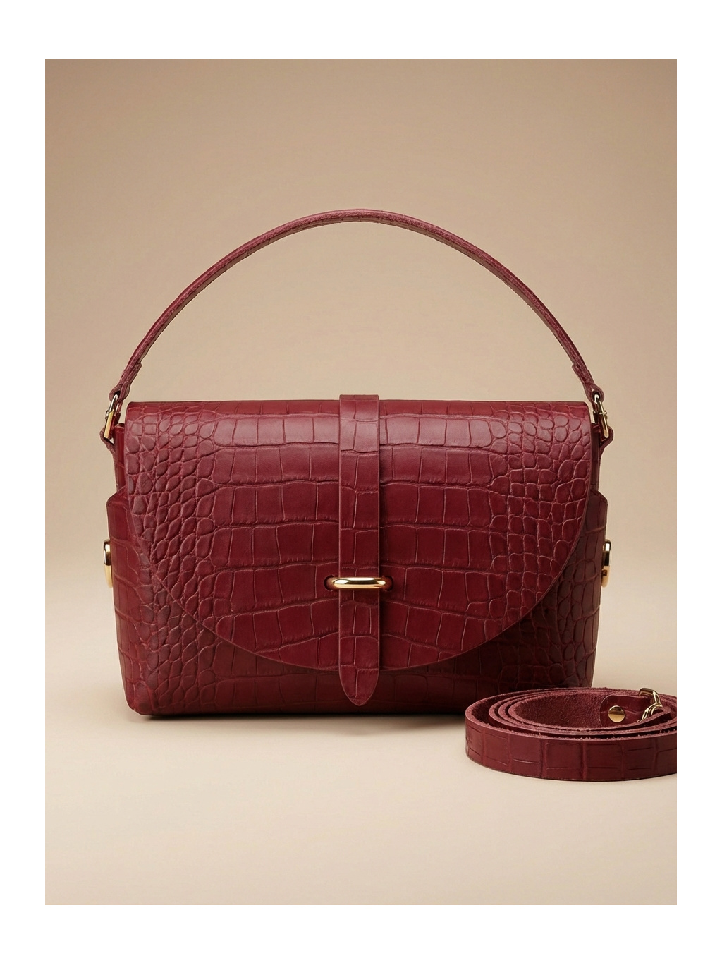 KOŽENÁ KABELKA S MĚNÍCÍM KRYTEM CROCO BORDEAUX