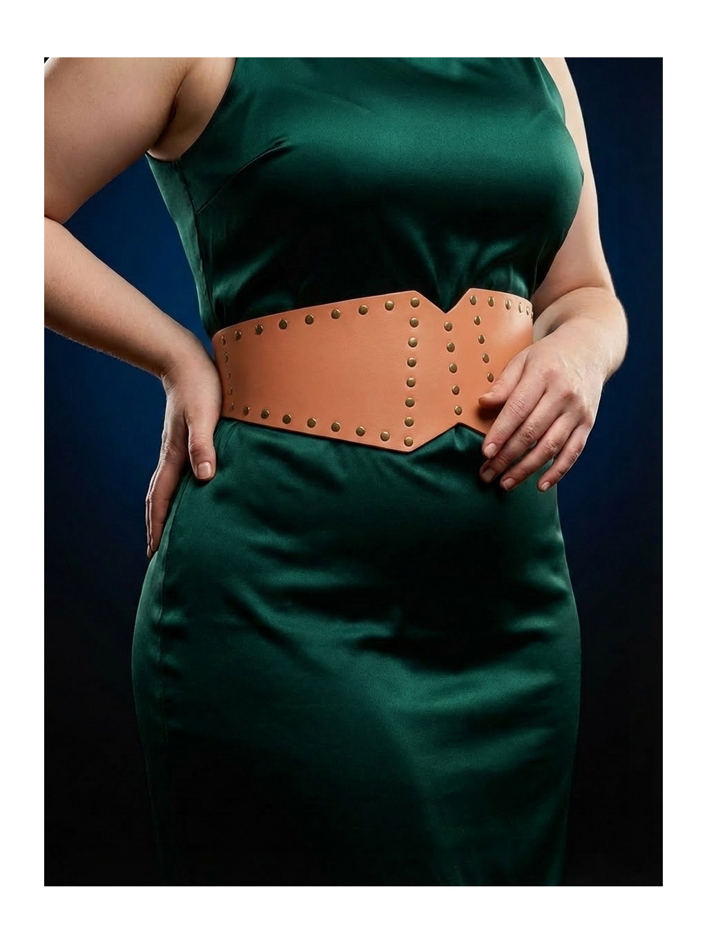 - Kožený pasový pásek s nýtováním – výrazný, ale stále elegantní doplněk
