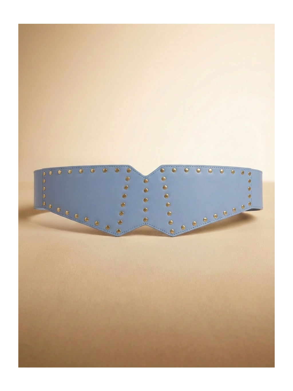 - Kožený pasový pásek s nýtováním – výrazný, ale stále elegantní doplněk