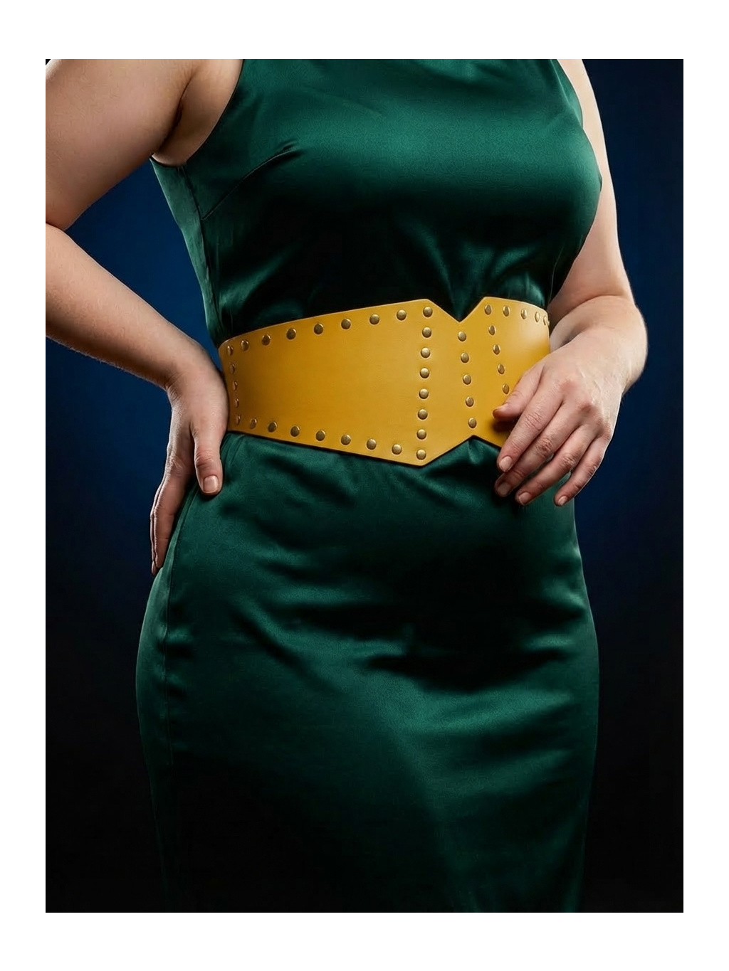 - Kožený pasový pásek s nýtováním – výrazný, ale stále elegantní doplněk