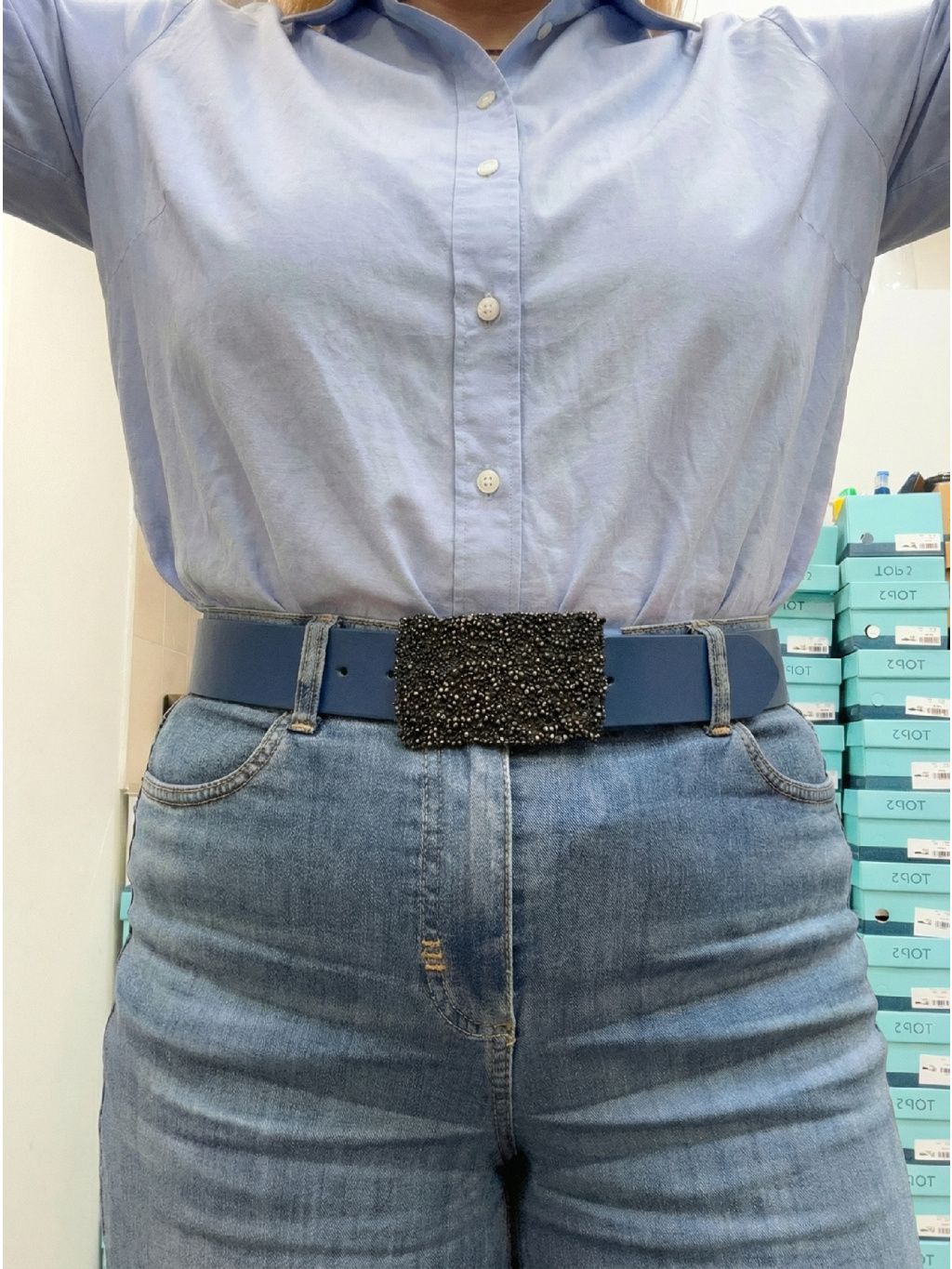 💎 Výrazná obdélníková spona s bohatým zdobením – šperkový efekt, který z pásku dělá hlavní akcent outfitu