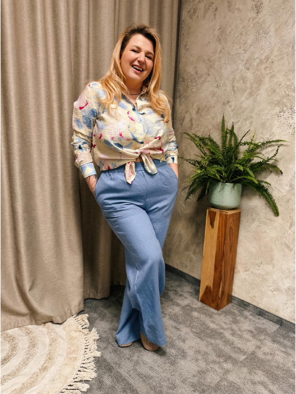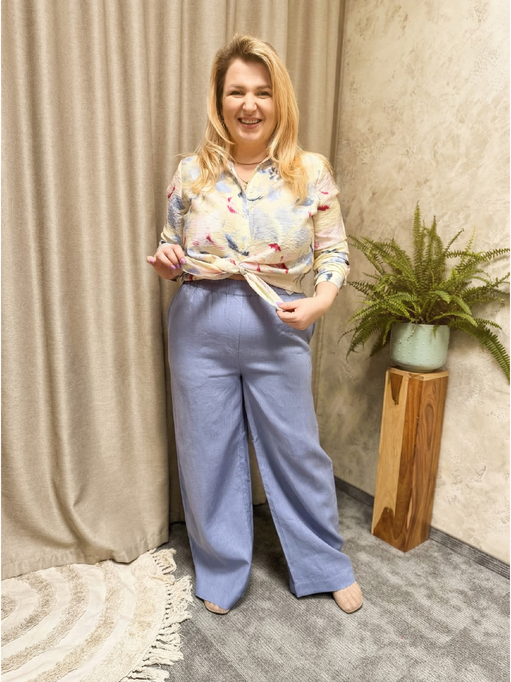 🌿 Lněný / lněný vzhled materiál – prodyšný, přírodní, ideální na teplejší dny