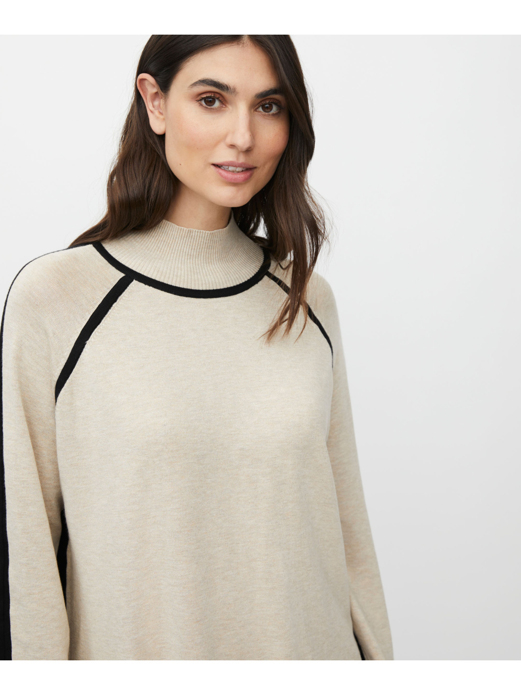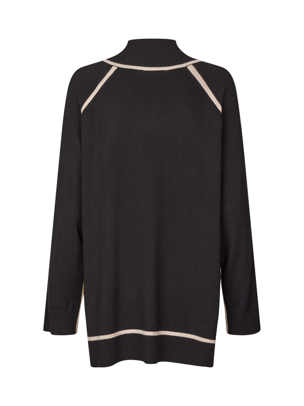 Svetr Freyane od Masai je ukázkou moderní elegance spojené s maximálním pohodlím. Díky viskózovému složení je neuvěřitelně měkký a lehký, takže se příjemně nosí po celý den. Dvoubarvný design s kontrastními liniemi působí trendy a nestárnoucím dojmem, zatímco stojáček dodává celému modelu čistý a sofistikovaný vzhled.