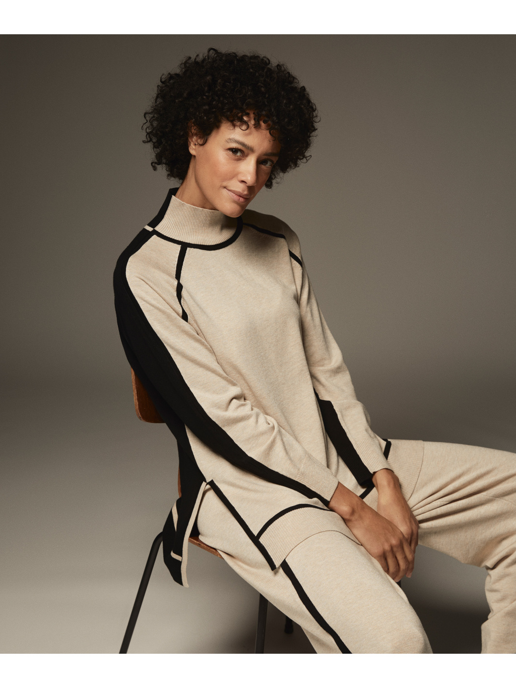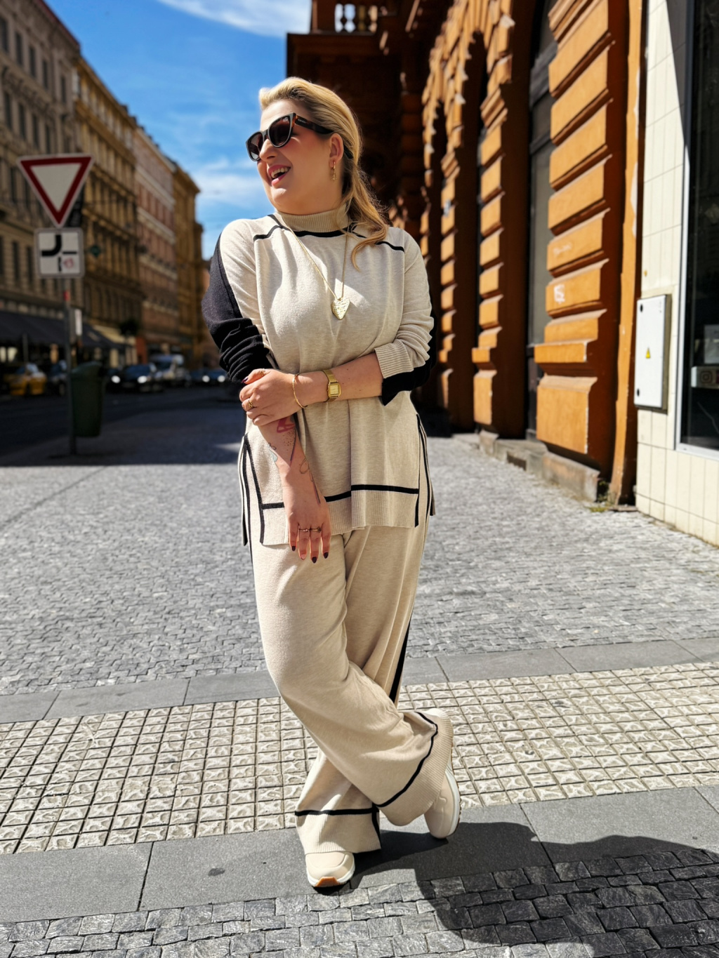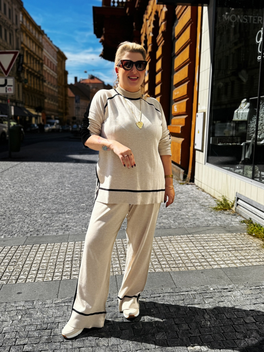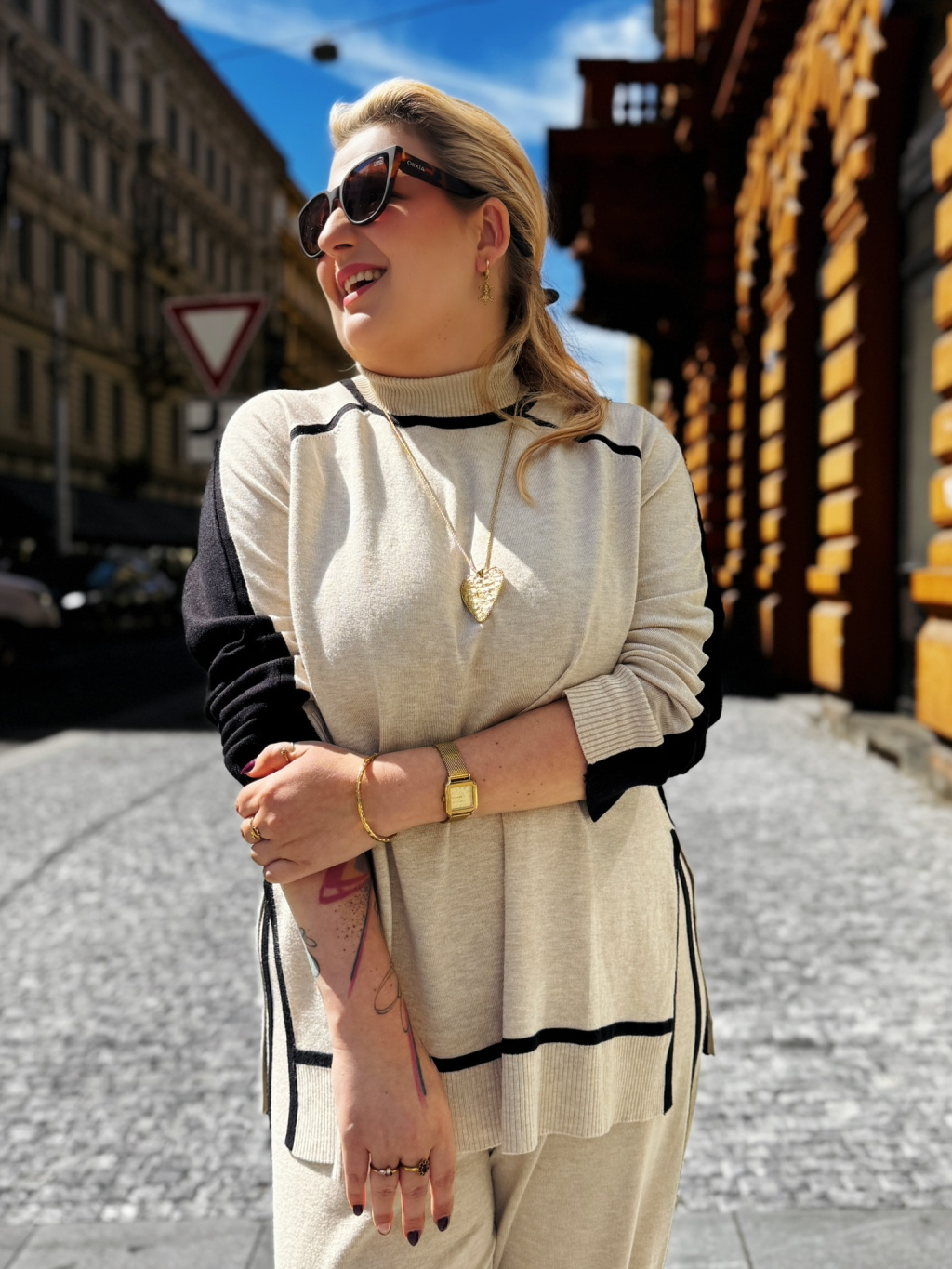 Svetr je ideální volbou pro ženy, které hledají kousek, jenž spojuje luxusní zpracování s univerzálností. Nejlépe vynikne v kombinaci s pletenými kalhotami Pexilon ze stejného materiálu a ve stejném dvoubarevném provedení – dohromady tvoří dokonale sladěný set, který využiješ jak pro volný čas, tak i pro elegantnější příležitosti.
