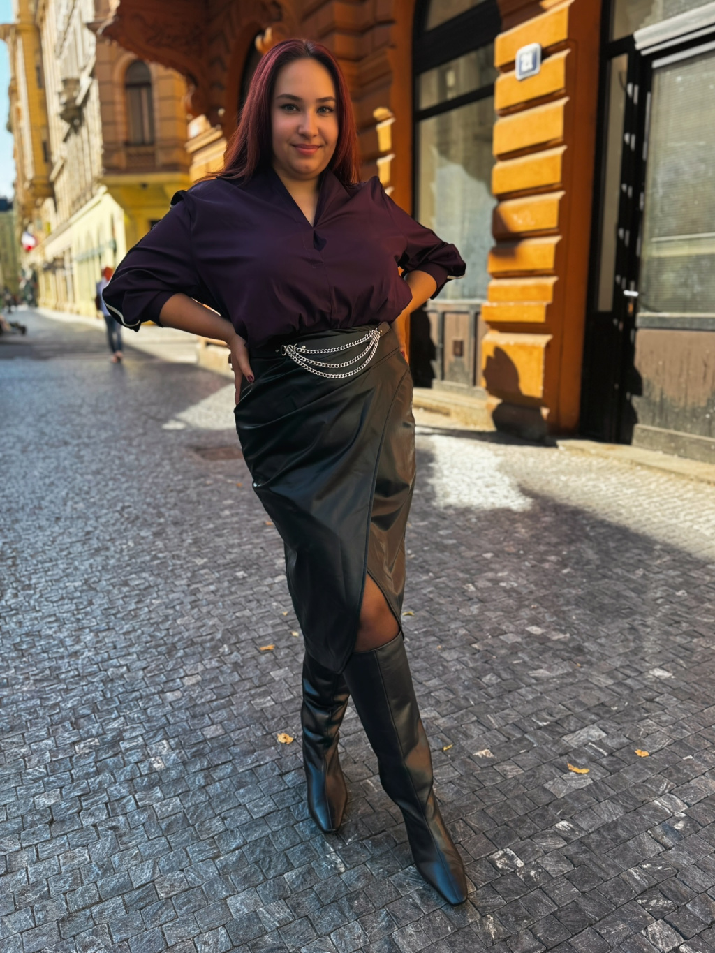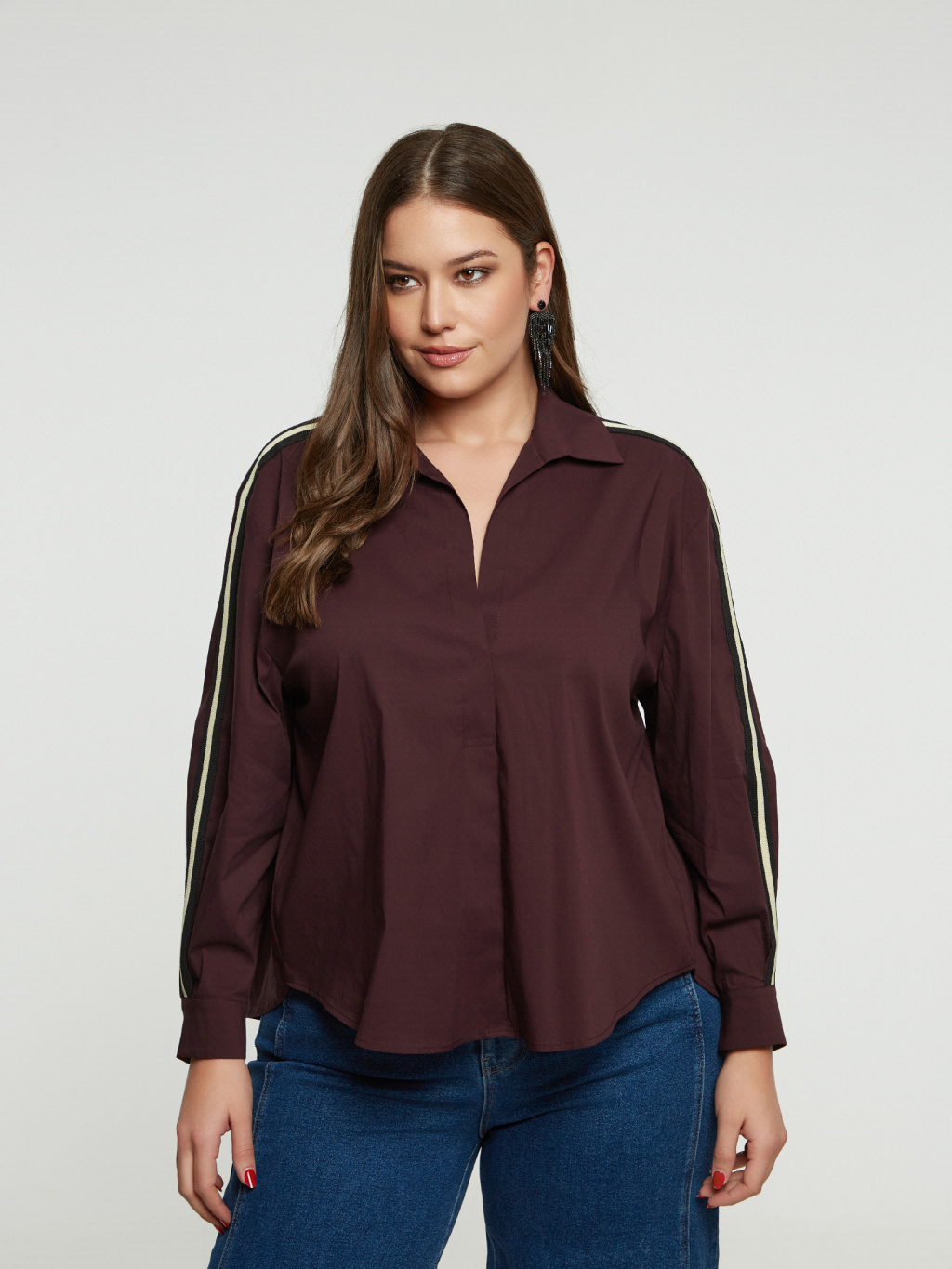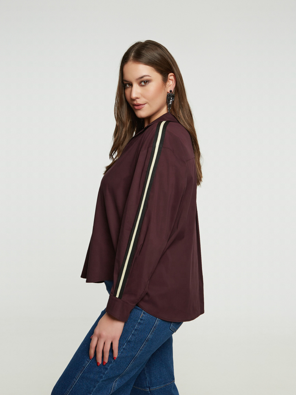 BAVLNĚNÁ HALENKA S LAMPASEM BORDEAUX PLUS SIZE