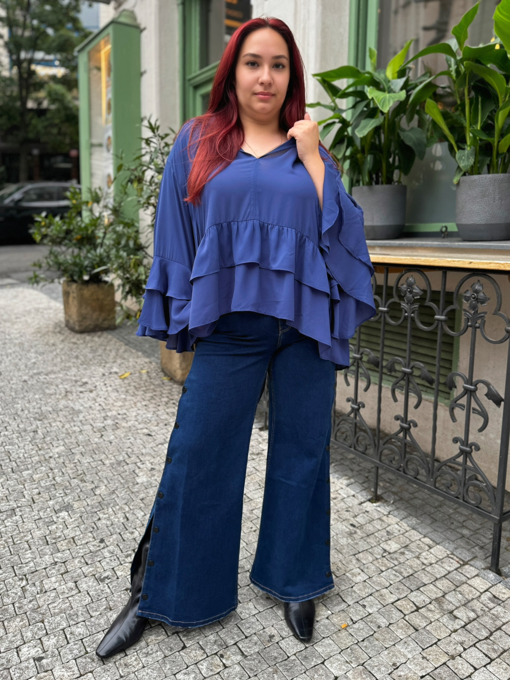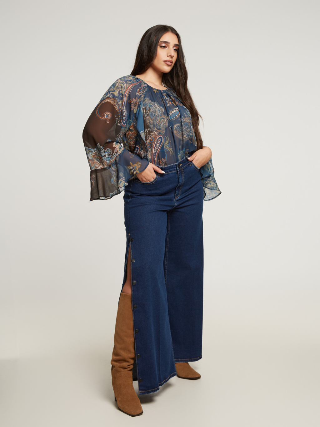 Flare džíny od značky Matfashion jsou kouskem, který ti dodá šmrnc i maximální pohodlí. Jsou ušité z kvalitního denimu s vysokým podílem bavlny, takže krásně drží tvar, ale zároveň zůstávají příjemné na nošení po celý den. Střih je lehce do zvonu, což opticky prodlouží nohy a vytvoří elegantní linii. Největší vychytávkou jsou cvoky po stranách, díky kterým si můžeš vytvořit rozparek přesně podle sebe – decentní nebo výrazný, podle nálady a příležitosti. Tmavý denim působí luxusně a hodí se ke všemu, ať už je zkombinuješ s košilí, svetrem nebo ležérním topem. Tyto džíny jsou trendy, originální a nadčasové, takže se rychle stanou tvým oblíbeným základem šatníku.