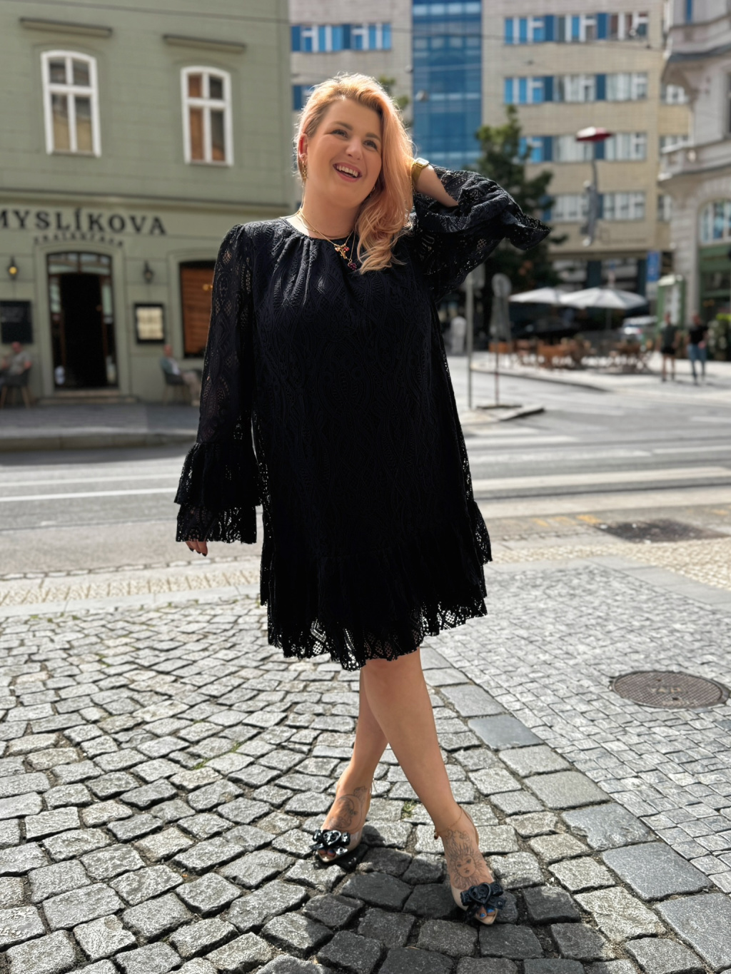 MINI KRAJKOVÉ ŠATY BLACK PLUS SIZE