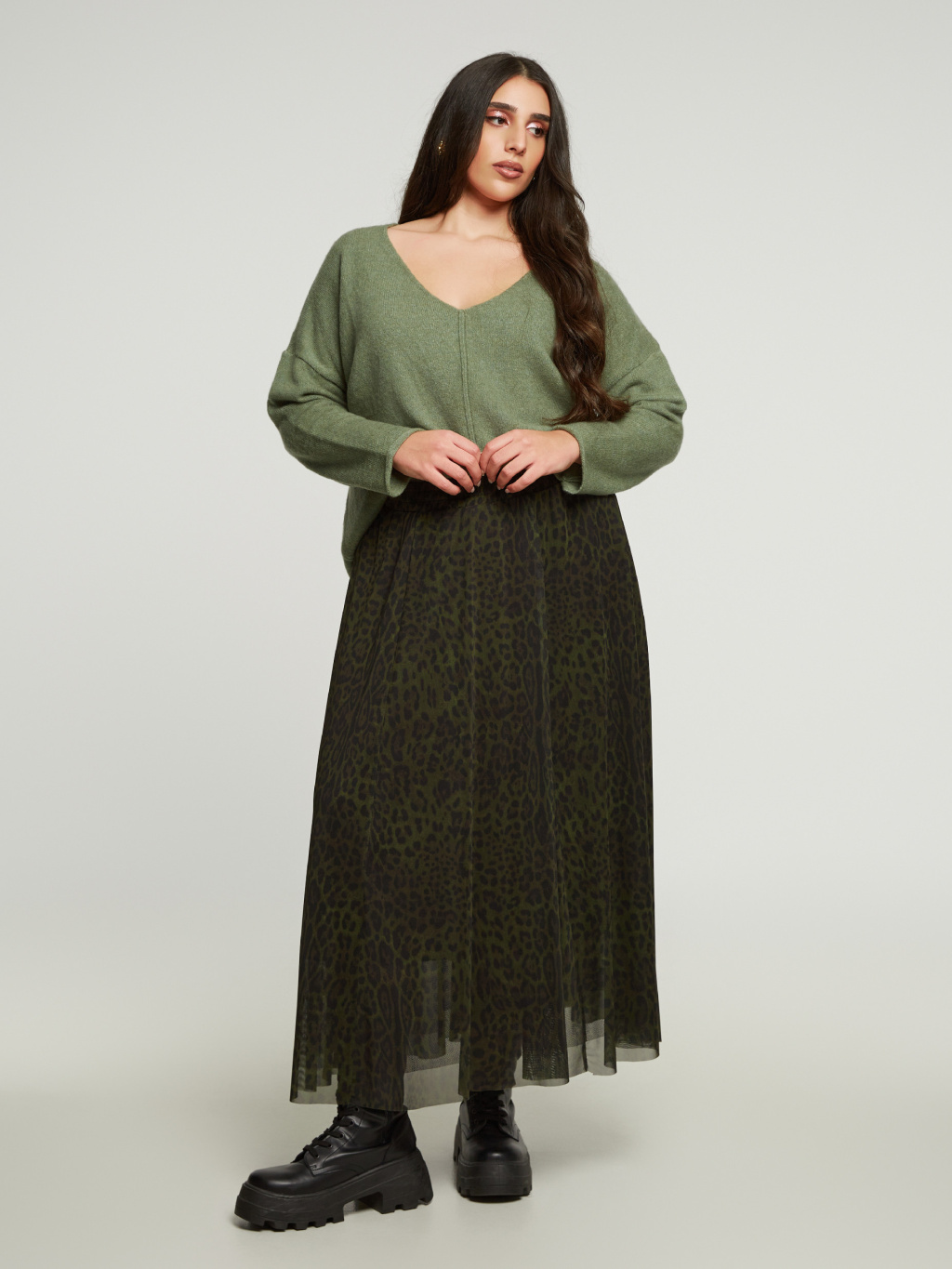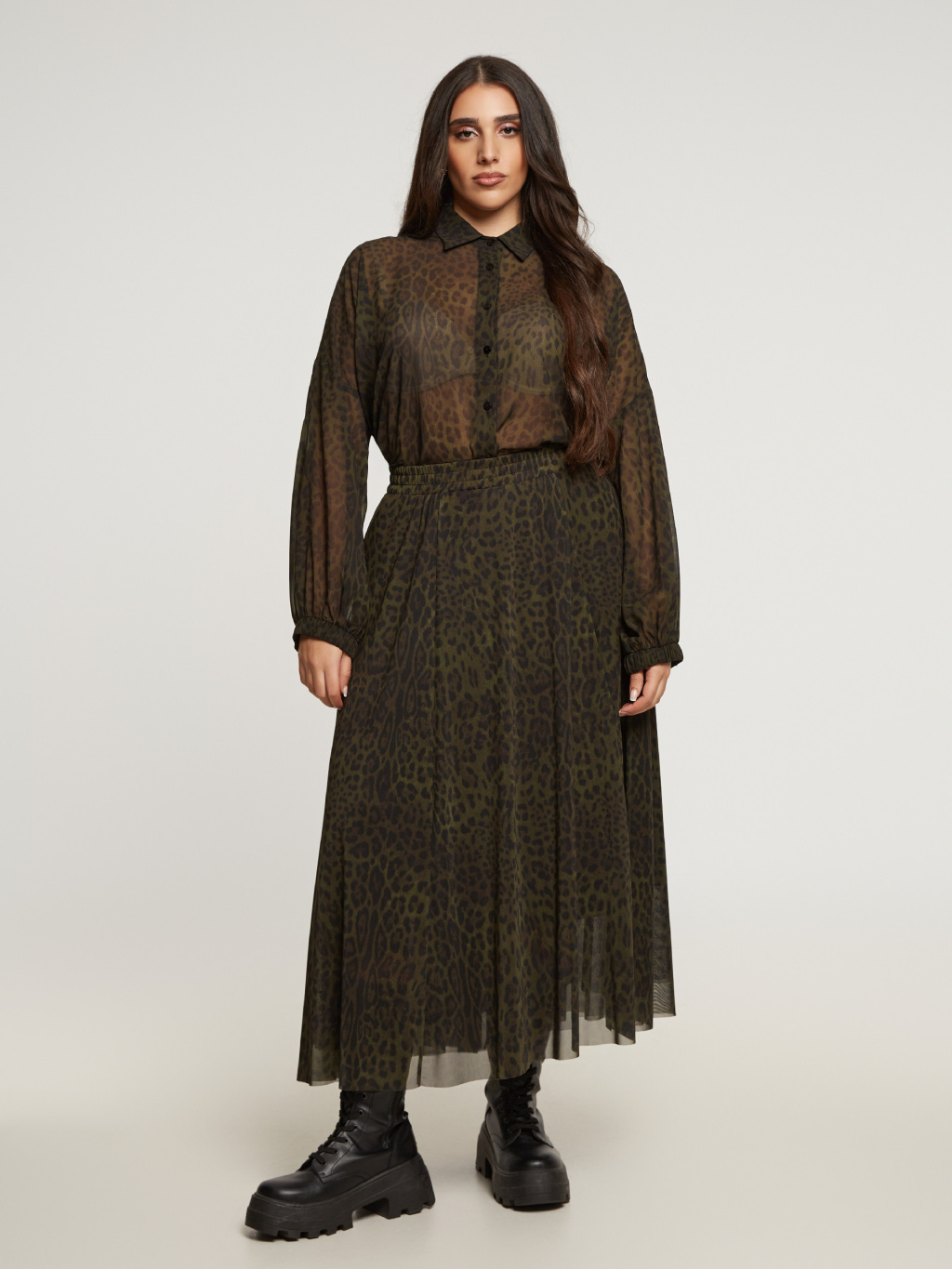 TYLOVÁ SUKNĚ NA GUMU LEOPARD PLUS SIZE