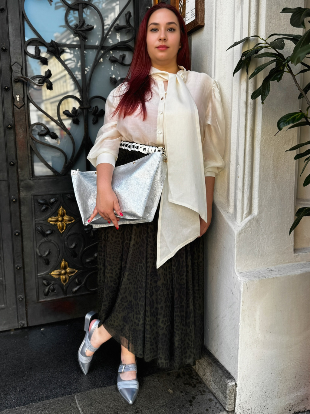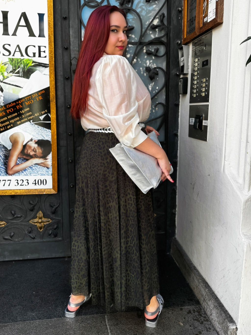 Tahle vrstvená maxi tylová sukně od značky Matfashion je kousek, který tě nadchne svou lehkostí a ženskostí. Měkký a příjemný materiál se krásně pohybuje s každým krokem a drobounký leopardí vzor dodává outfitu jemný, ale přitom trendy šmrnc. V pase je praktická guma, díky které sukně perfektně padne a zároveň se pohodlně nosí celý den.