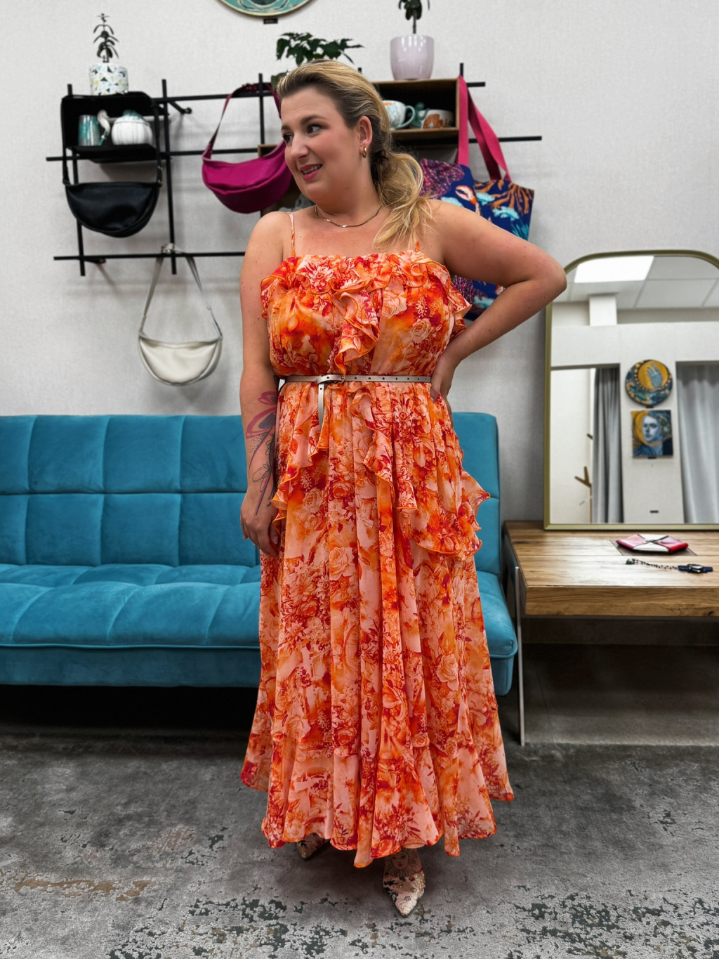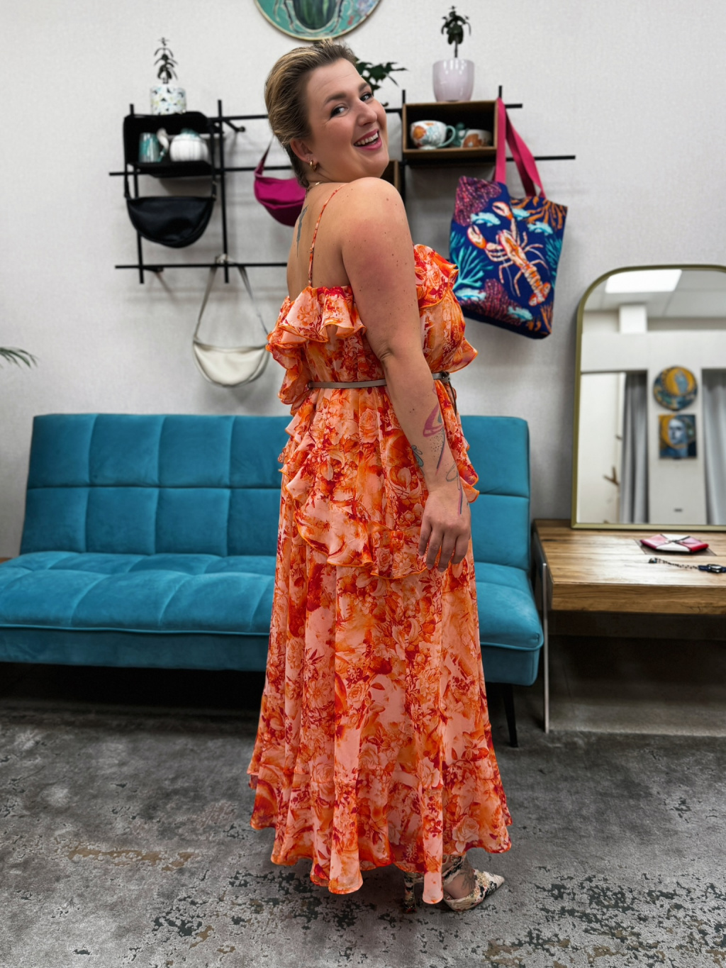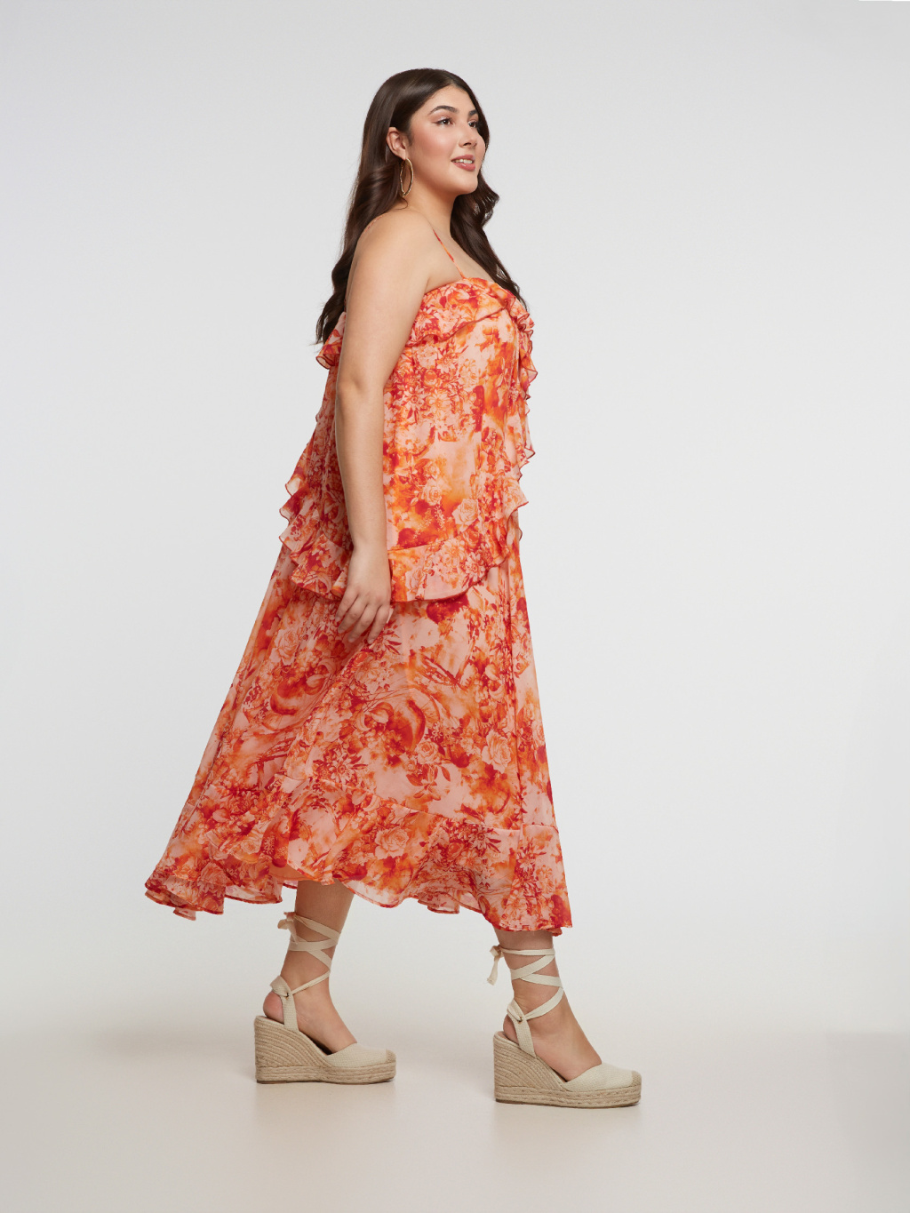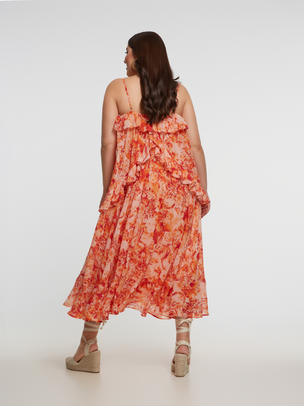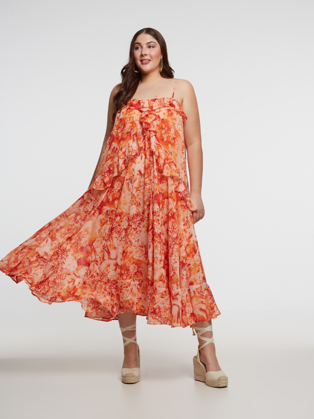 Lehkost, elegance a pohodlí v jednom. Tyto luxusní volánkové šaty na ramínka od značky MatFashion jsou tím pravým kouskem pro letní městské procházky i dovolenkové večery. Díky jedinečné unisize velikosti a nastavitelným ramínkům perfektně padnou každé postavě. Jsou ušité z lehkého, chladivého materiálu, který příjemně splývá a zajišťuje maximální komfort během celého dne. Šaty mají délku do půlky lýtek a nestárnoucí elegantní střih, který doplňuje hravý, květinový oranžový vzor. Vytvořte si svůj nezaměnitelný letní look s tímto sofistikovaným kouskem, který nikdy nevyjde z módy.