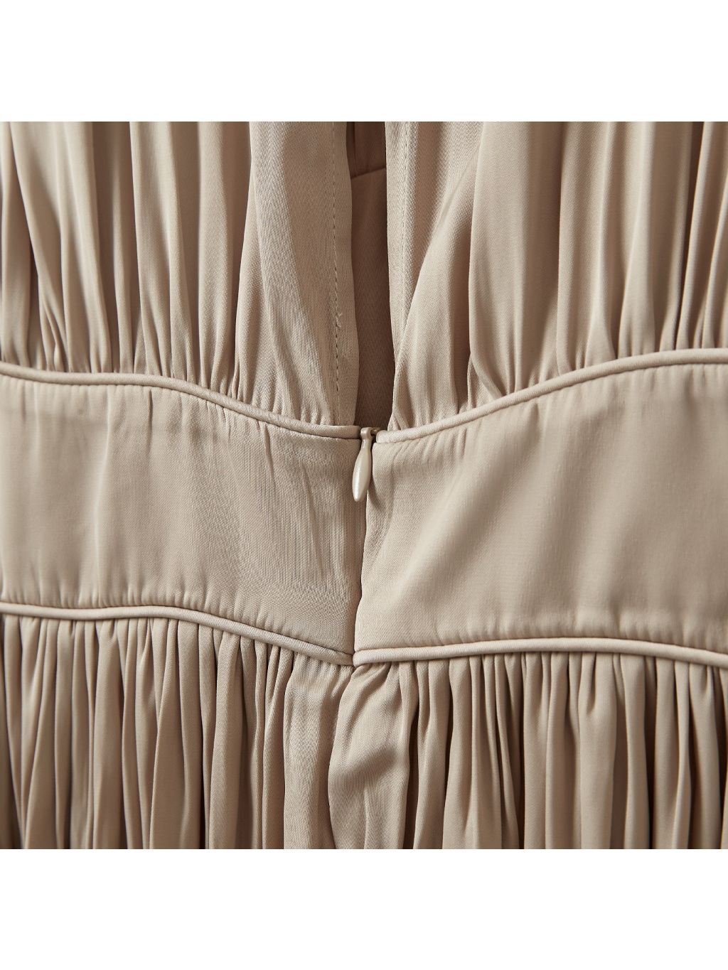 🎀 Zvýrazněný pas – vsadka v pase se zapínáním na boku jemně tvaruje křivky, aniž by šaty obepínaly