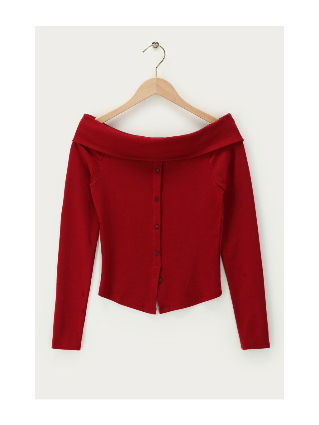 Červený top se spadlými rameny a knoflíčky od My Jewellery působí velmi žensky a elegantně díky odhaleným ramenům a jemně přiléhavému střihu, který krásně zvýrazní siluetu. Spadlá linie ramen dodává modelu lehce smyslný nádech, zatímco knoflíčky na přední straně vytvářejí zajímavý detail a opticky prodlužují horní část těla. Top se skvěle kombinuje s džínami, sukní i elegantními kalhotami a hodí se jak na běžné nošení, tak na večerní posezení či neformální společenské příležitosti. Výrazný, ale stále nadčasový kousek, ve kterém se budete cítit sebevědomě a přirozeně krásně.