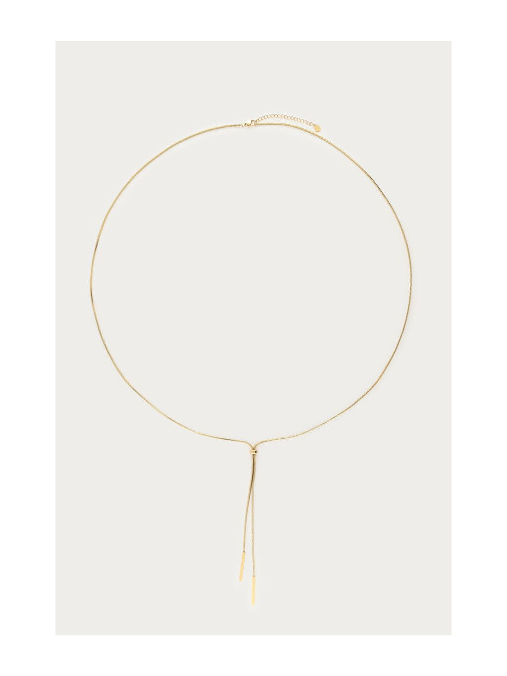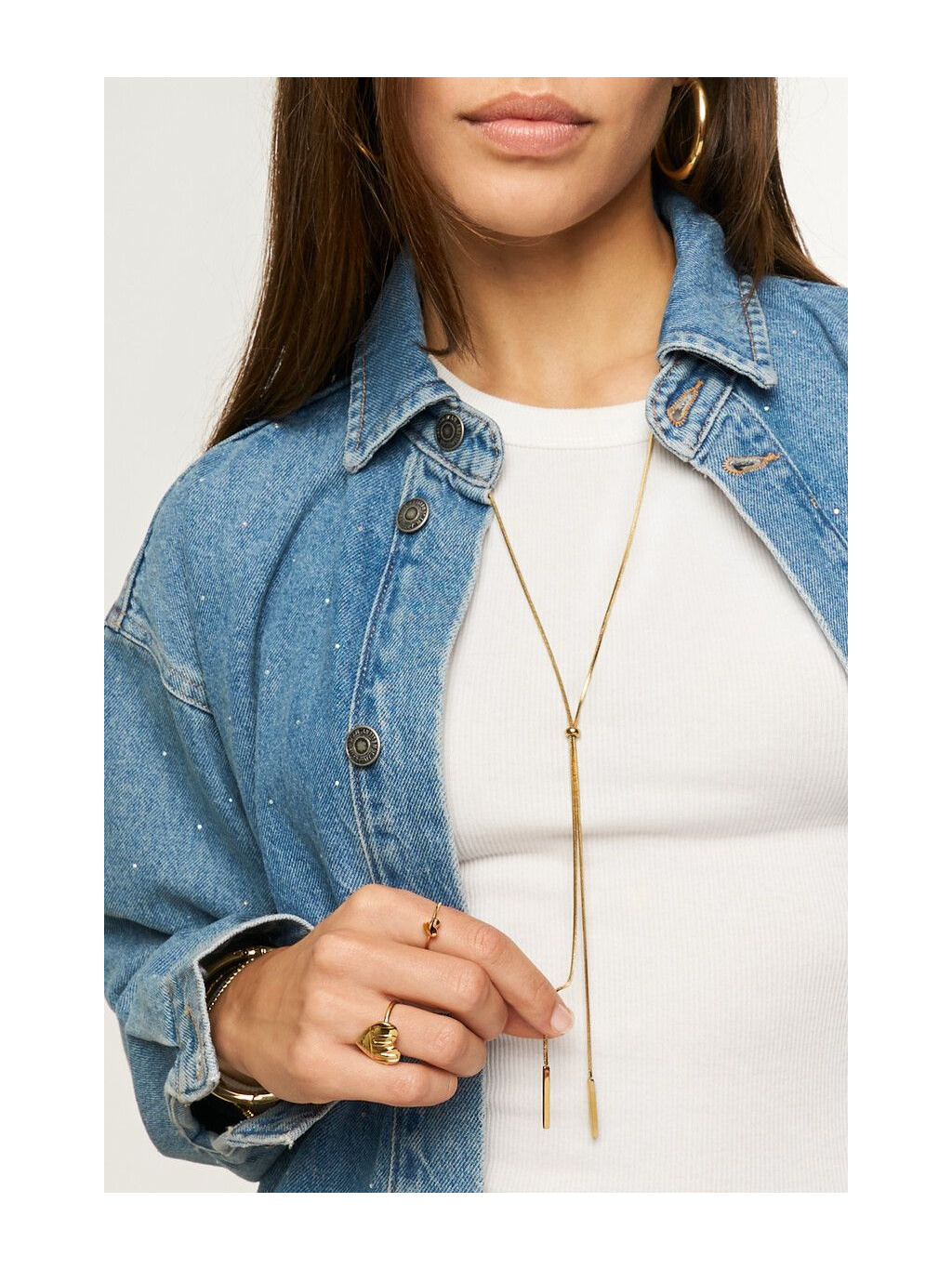 Díky délce 89 cm a nastavitelnému posuvnému systému si můžete náhrdelník upravit přesně podle svého vkusu – nosit jej delší přes šaty nebo kratší k halence. Tyčinky o délce 2,4 cm dodávají celku elegantní pohyb a lehkost.