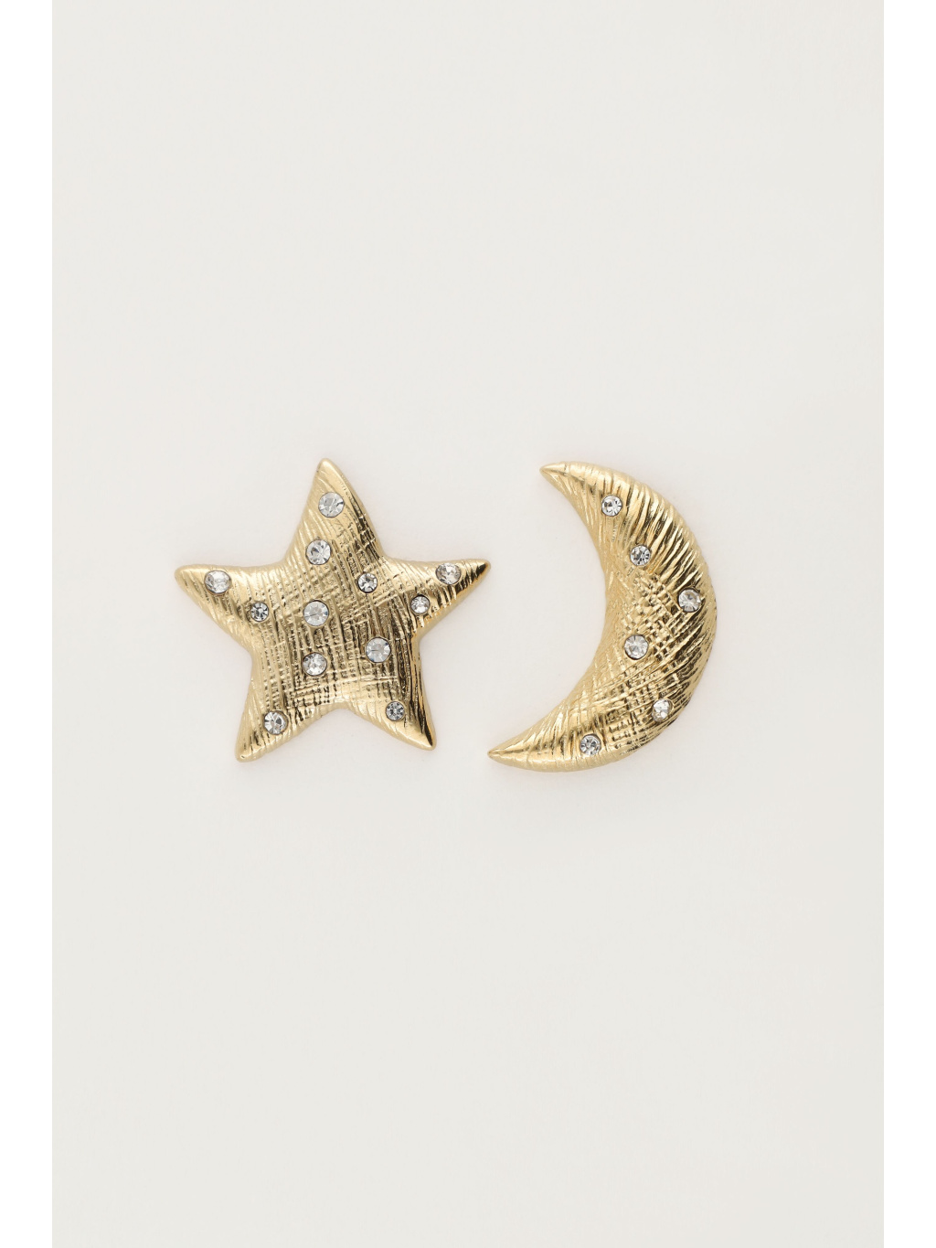 Zlaté náušnice hvězda a měsíc s krystaly – MyJewellery