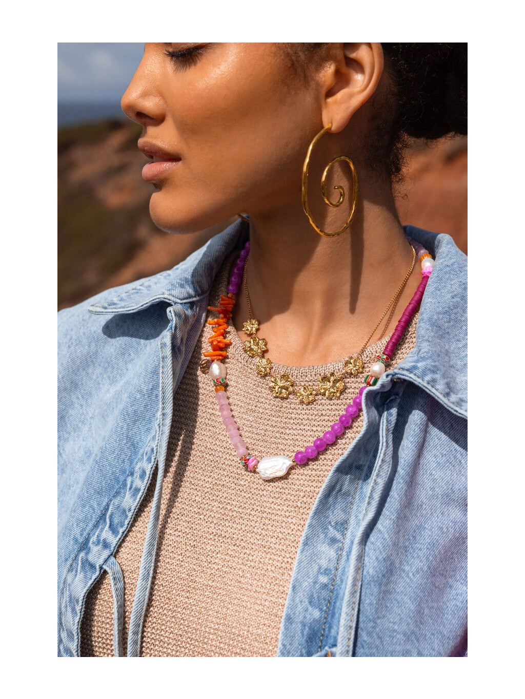 Barvy, perly a špetka svobody. Tento náhrdelník přináší do tvého outfitu radost, hravost a kousek letní bezstarostnosti. Každá říční perla je originál, takže každý náhrdelník je malinko jiný — přesně jako my všechny.