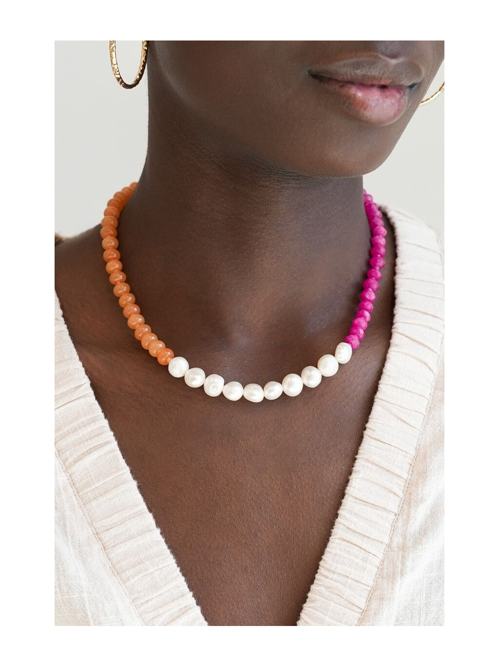 Spojení kvalitního polyesteru, prémiové nerezové oceli a pravých říčních perel dává vzniknout originálnímu kousku, který rozzáří každý outfit. Každá perla je unikátní — žádné dva náhrdelníky nejsou úplně stejné, a právě v tom je jejich kouzlo. ✨