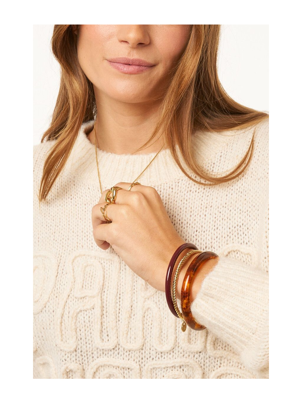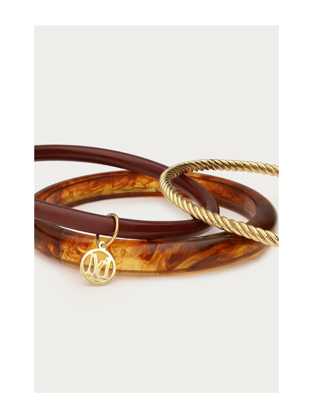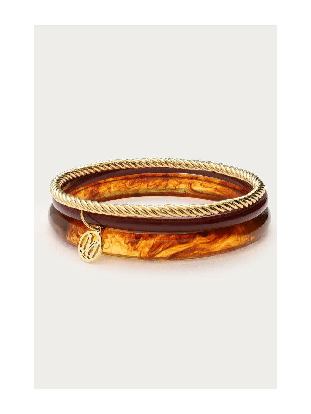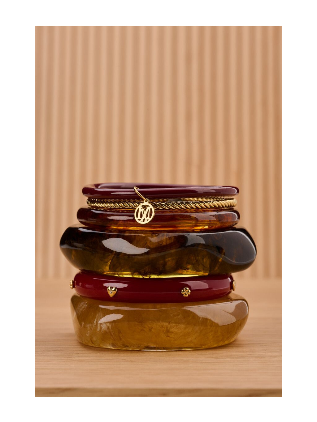 Luxusní set tří náramků Gold Amber je dokonalou kombinací elegance a přirozené krásy. Každý z náramků má svůj jedinečný charakter – zlatý s jemným krouceným detailem, tmavě červený a náramek v jantarovém odstínu s efektem živé struktury. Společně vytvářejí harmonický celek, který působí sofistikovaně a zároveň originálně.