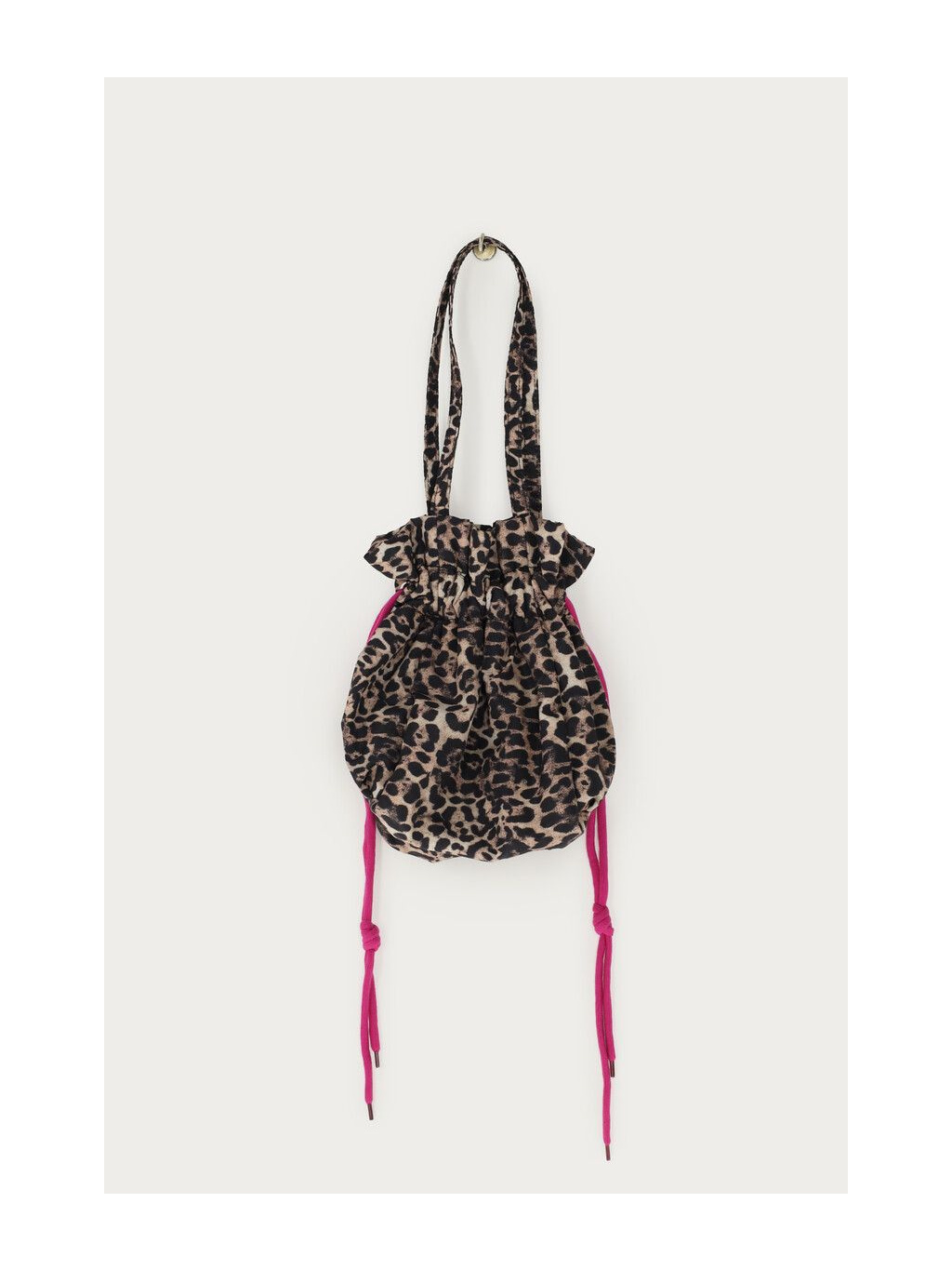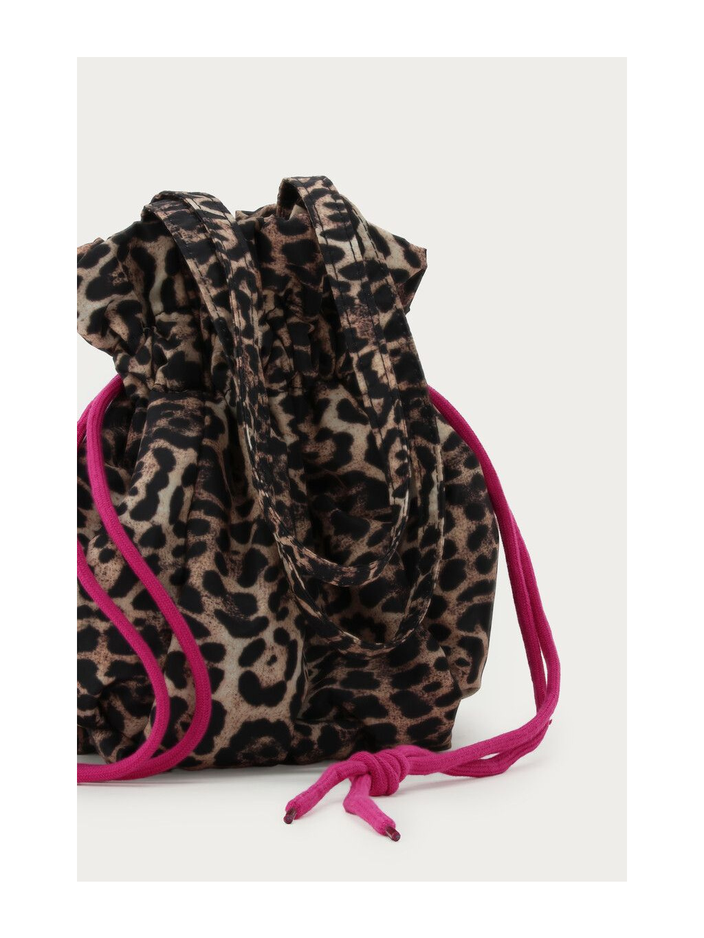 Leopardí kabelka My Jewellery s výrazným růžovým stahováním je hravý doplněk, který dodá každému outfitu šmrnc. Praktické zavírání na stahovací šňůrku jí dodává ležérní a zároveň trendy vzhled, zatímco vnitřní kapsička uschová všechny drobnosti, které potřebuješ mít po ruce.