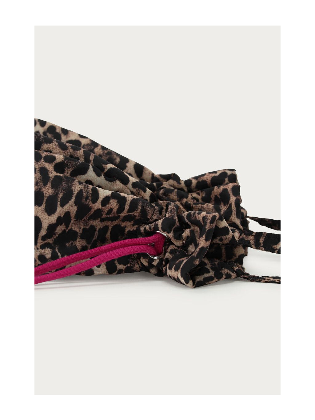 Stylový leopardí vzor doplněný kontrastní růžovou šňůrkou z ní dělá výrazný a zábavný kousek, který tě nikdy nenechá splynout s davem.