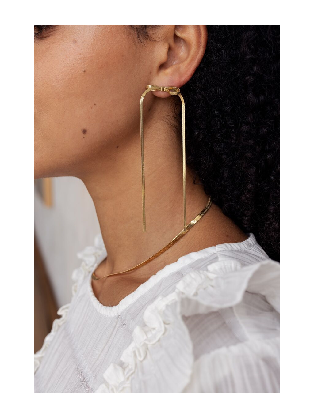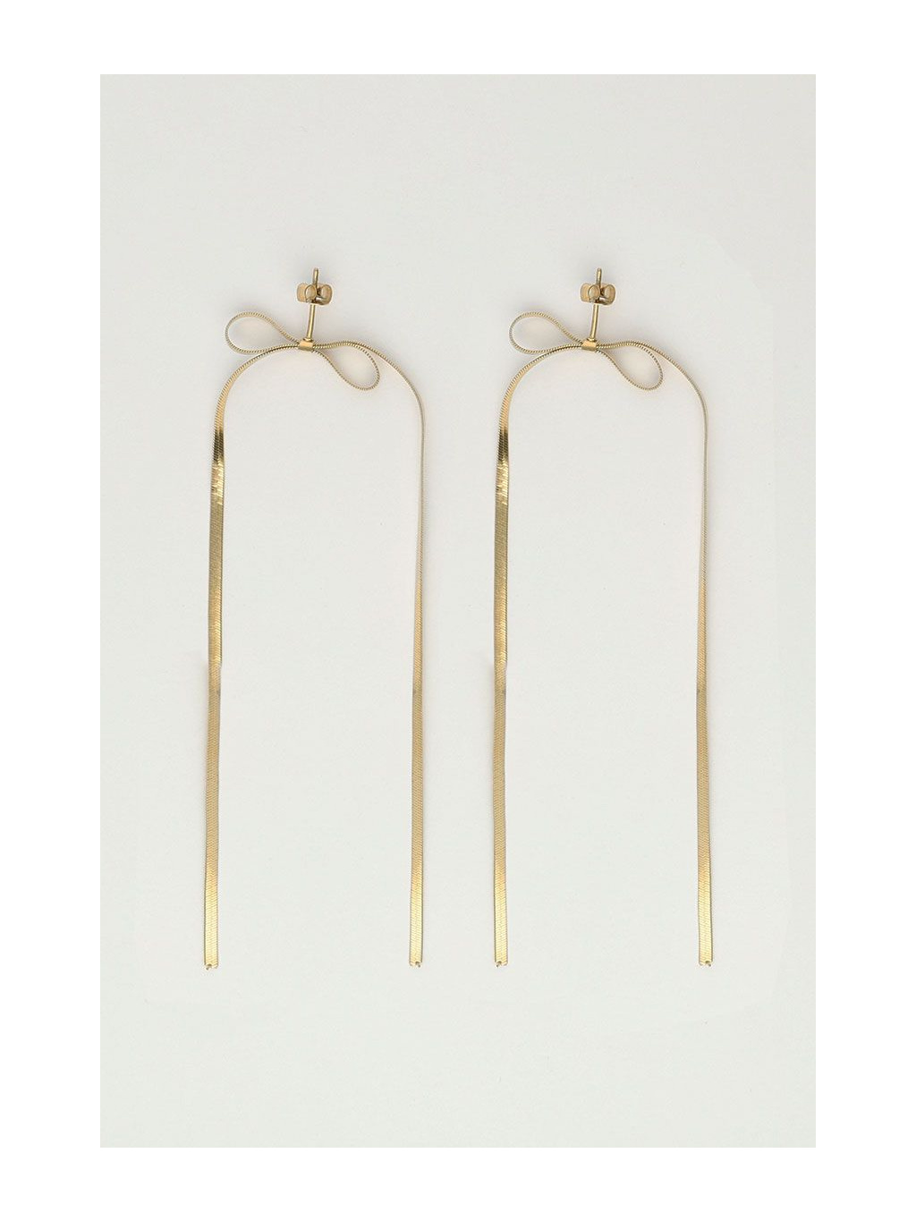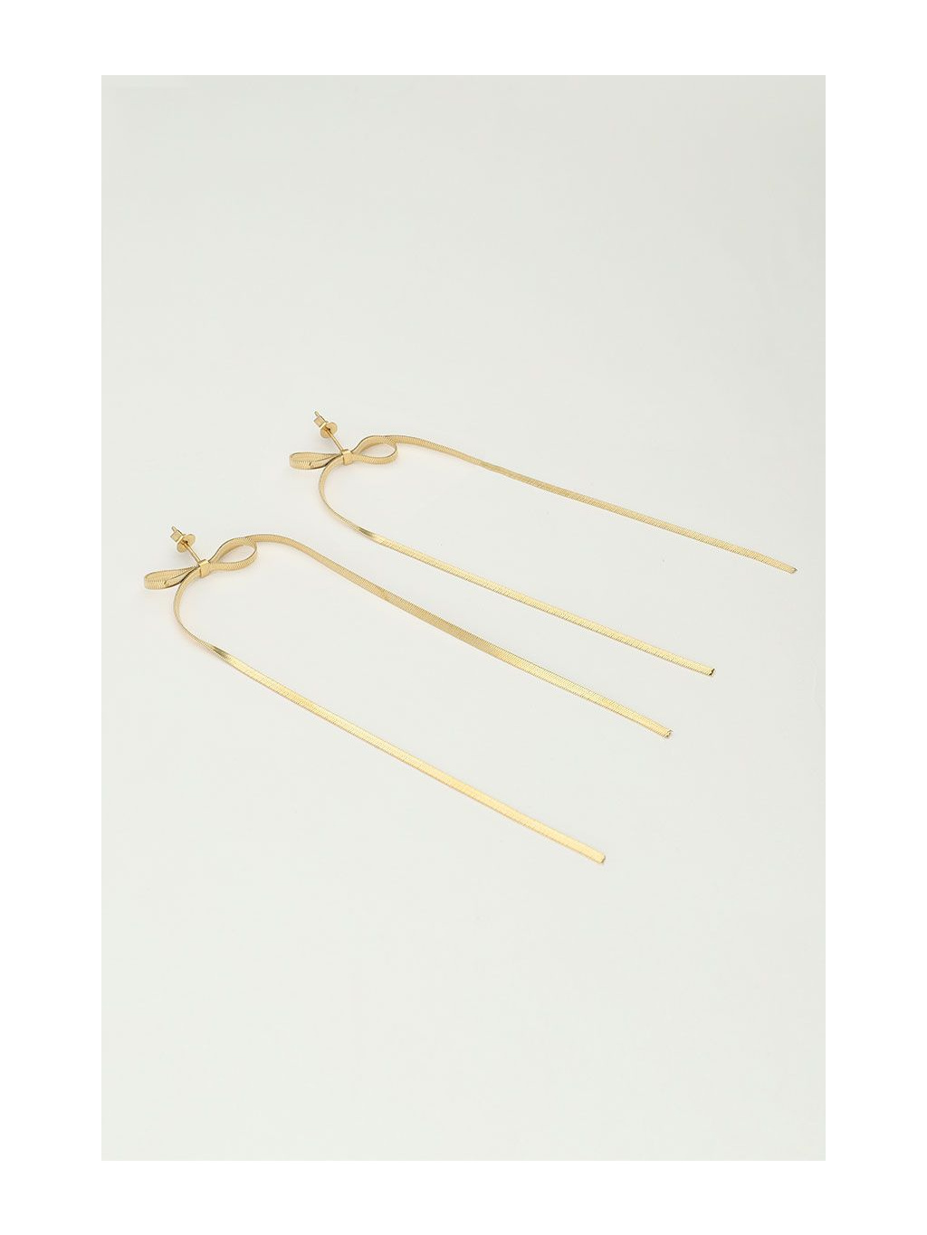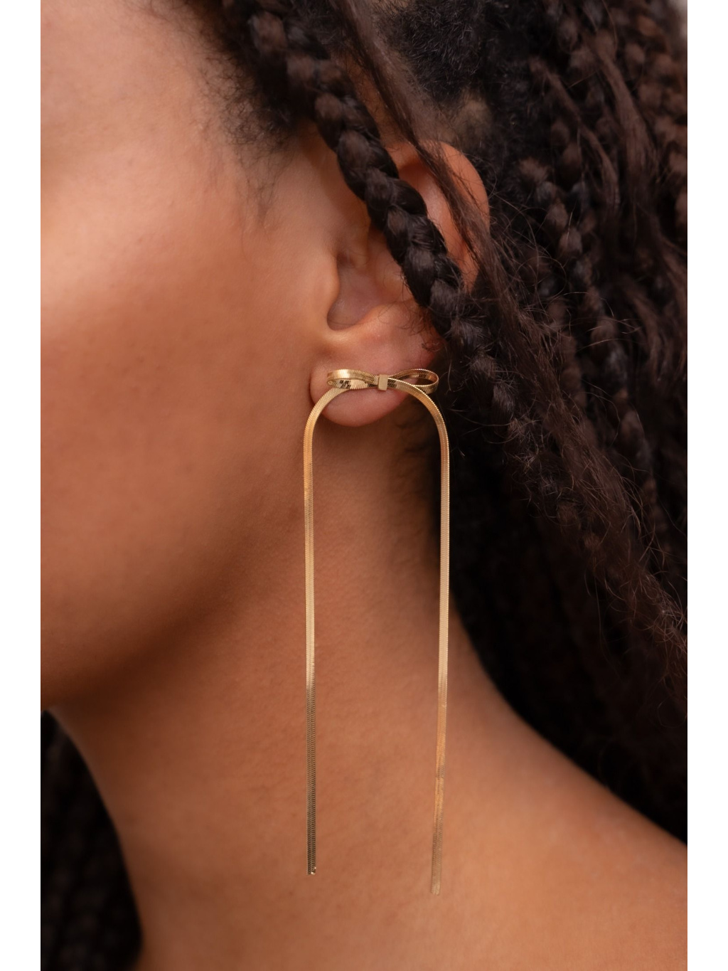 Elegantní zlaté náušnice s mašličkou od My Jewellery jsou dokonalým spojením jemnosti a výrazného stylu. Díky svému minimalistickému, ale prodlouženému tvaru (10 cm) krásně protáhnou krk a dodají tvému vzhledu sofistikovaný půvab.