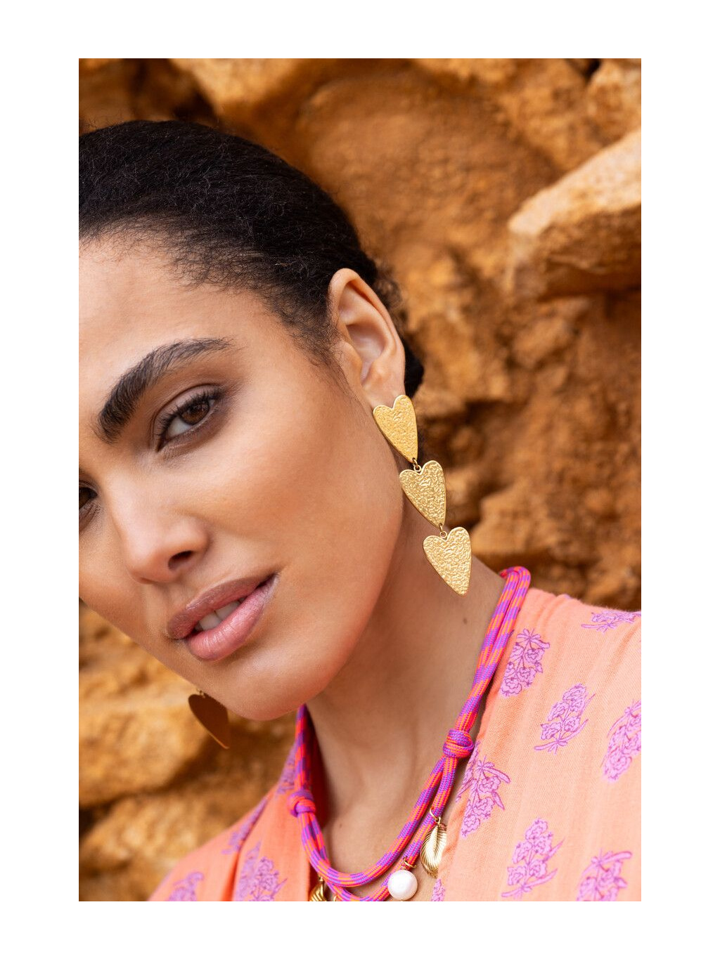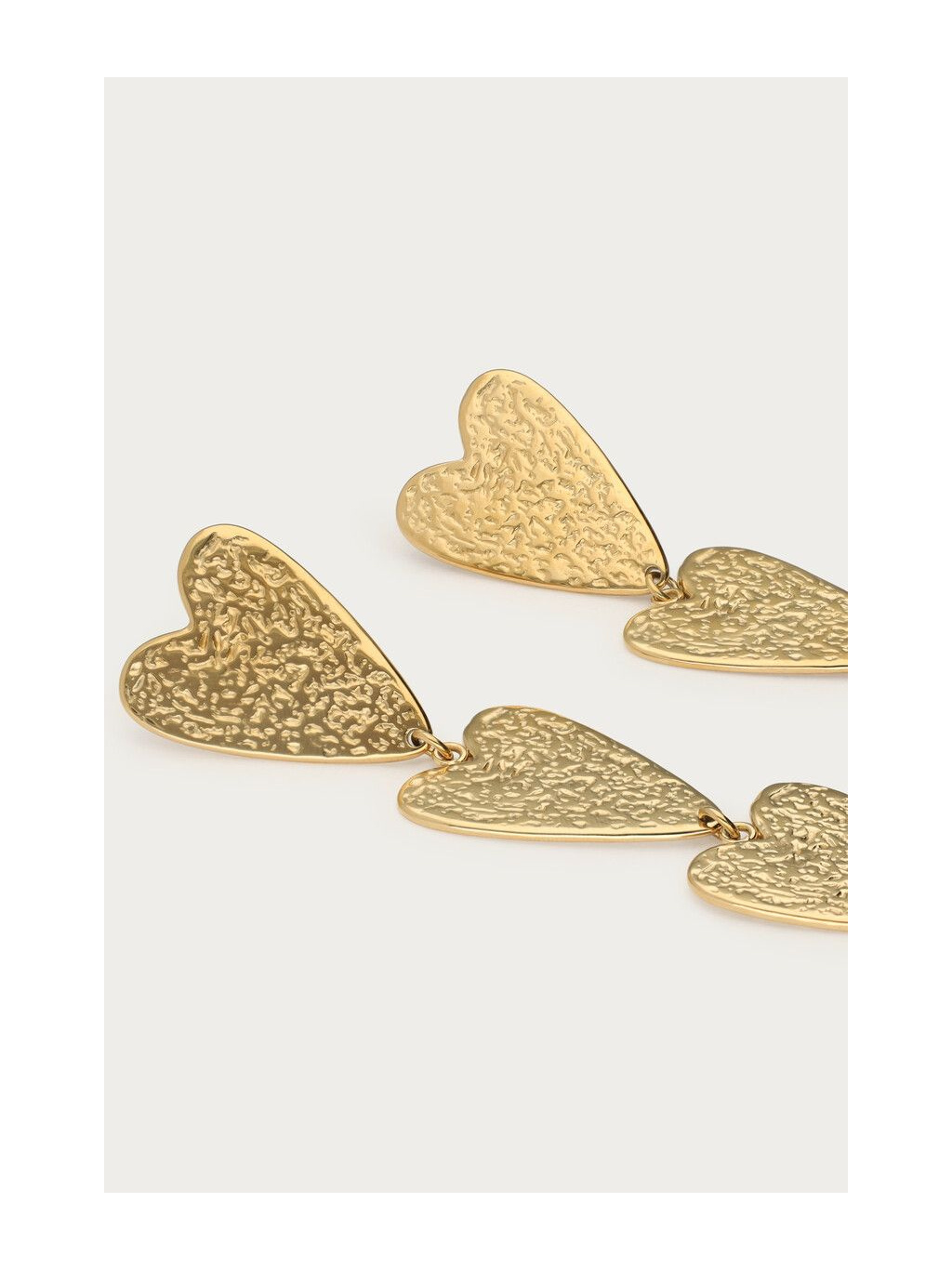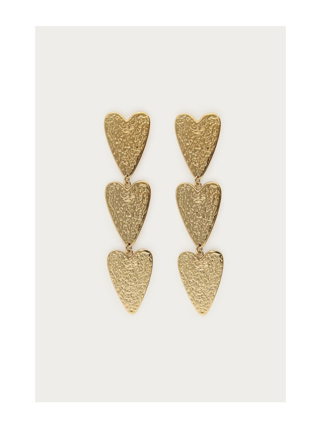 Elegantní, výrazné a stvořené pro ženy, které milují šperky s osobitostí. Tyto náušnice jsou vyrobené z prémiové chirurgické oceli, díky čemuž nečernají a zachovají si svůj lesk i při každodenním nošení. Design tvoří tři reliéfní srdce v řadě, která vytvářejí krásný pohyb a okamžitě upoutají pozornost.