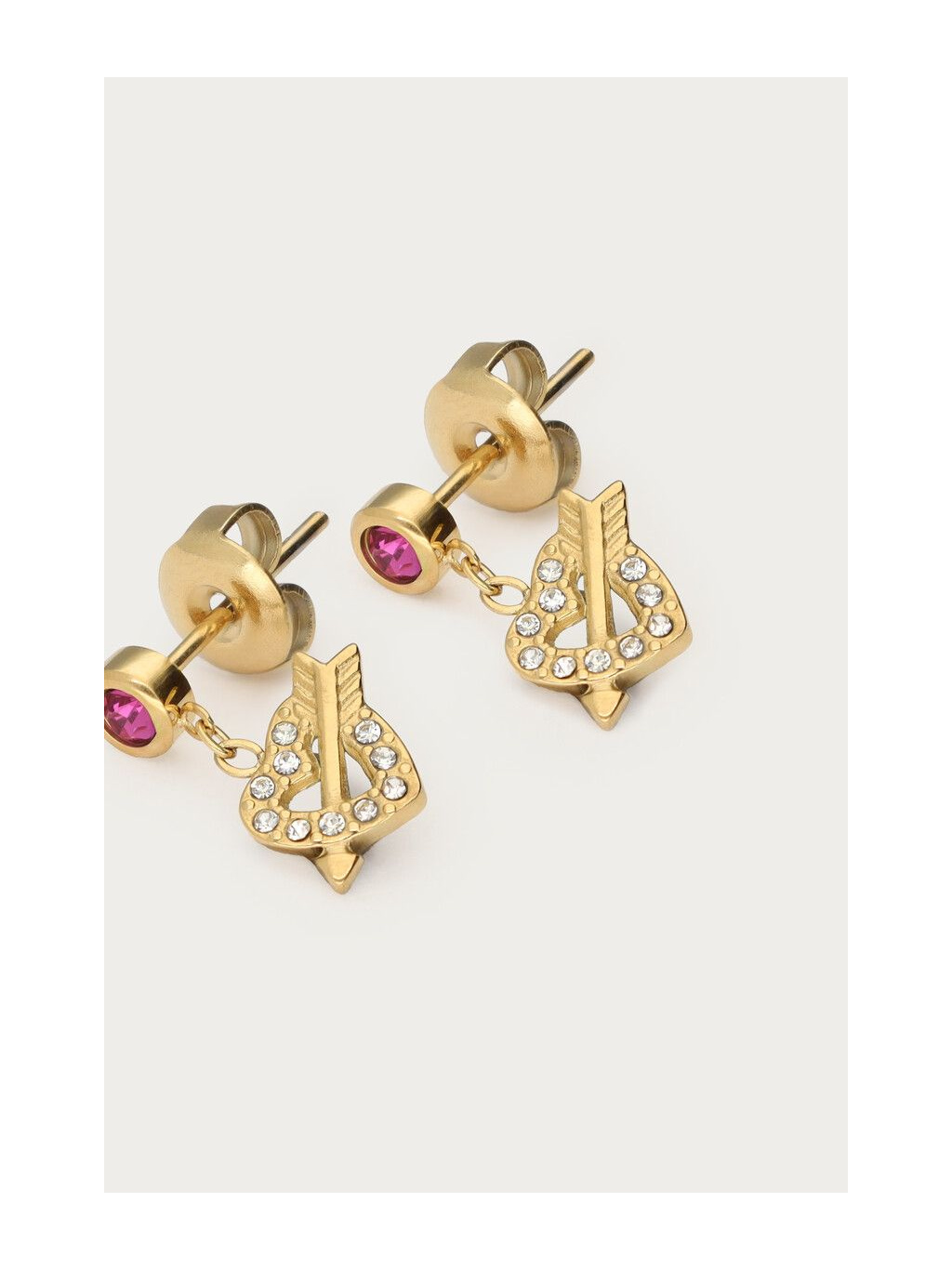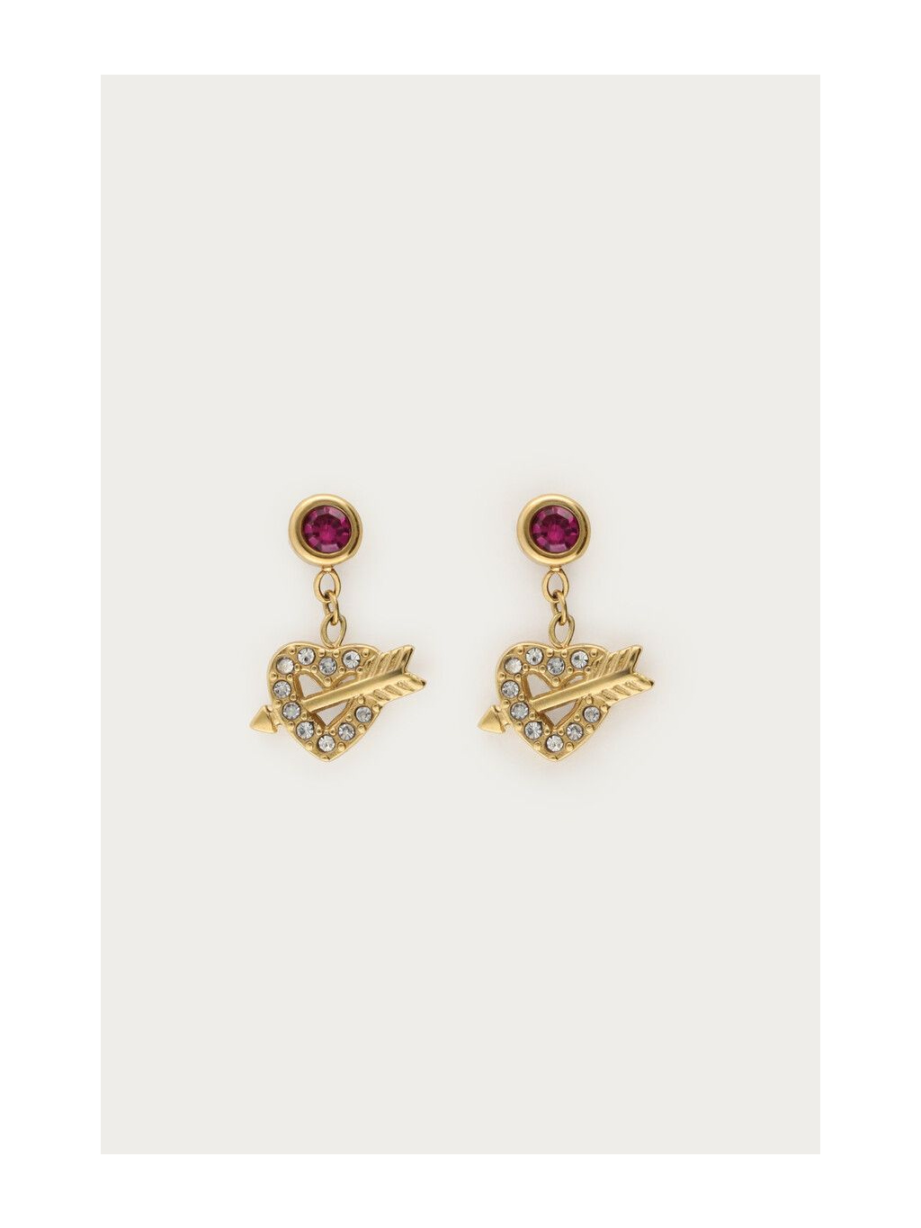 Zlaté srdíčko zdobené třpytivými kamínky a doplněné o šíp tvoří hravý a něžný detail, který působí jako malý šperk s příběhem. Díky velikosti 0,7 × 0,9 cm jsou nenápadné, lehké a ideální na každodenní nošení i speciální příležitosti.