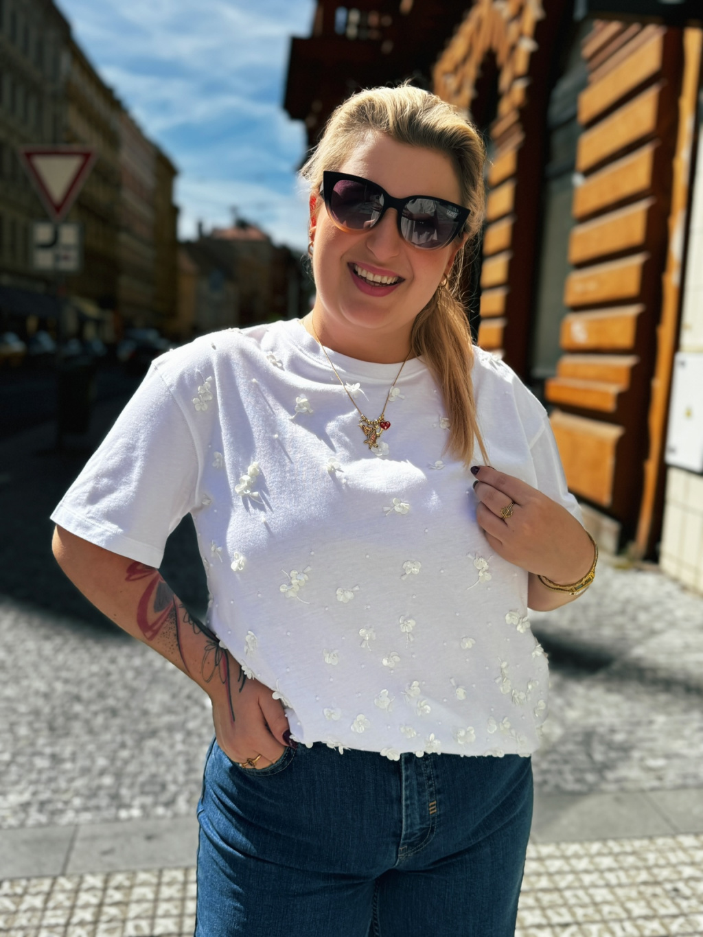 BAVLNĚNÉ TRIČKO S KORÁLKY WHITE