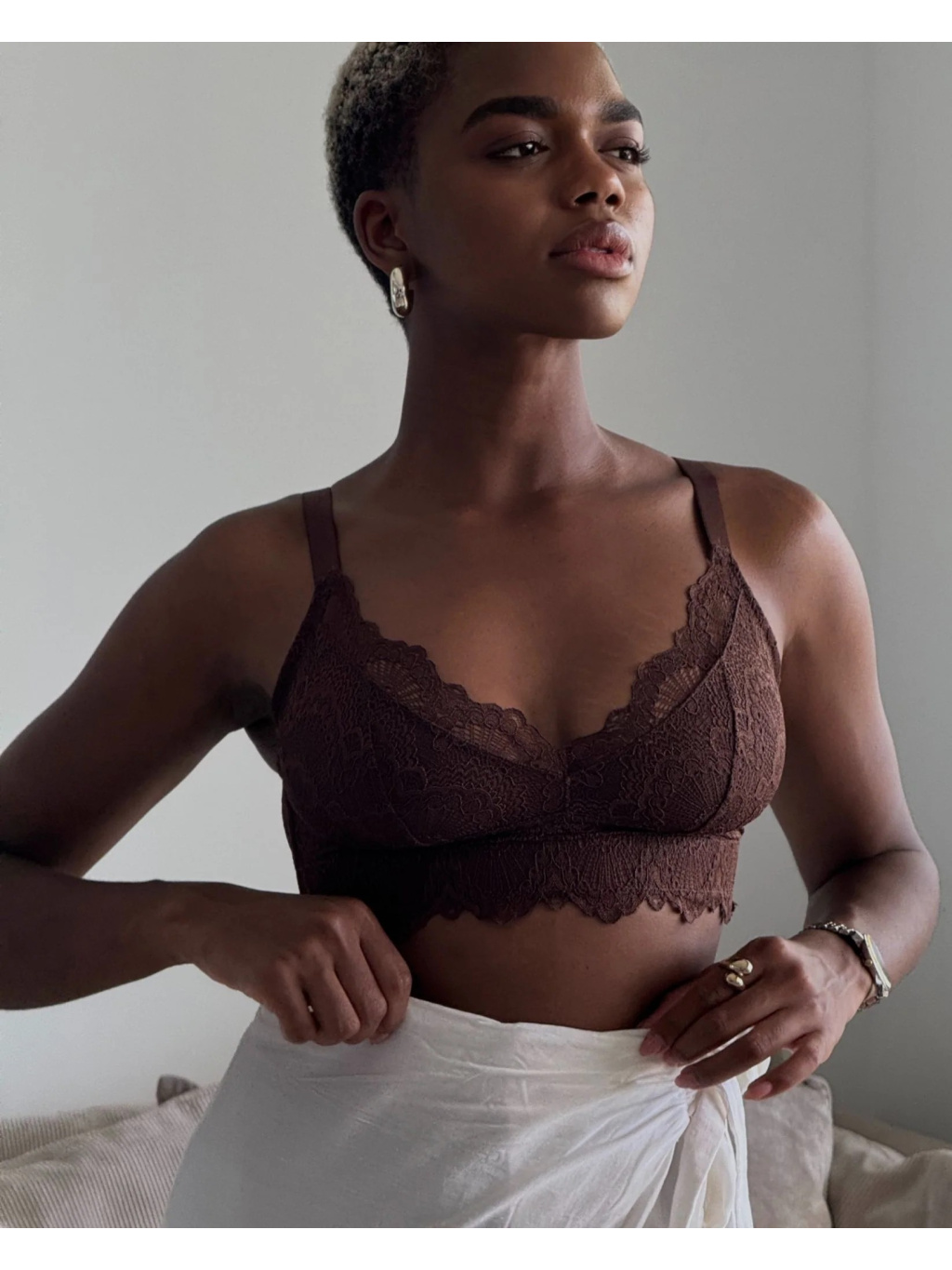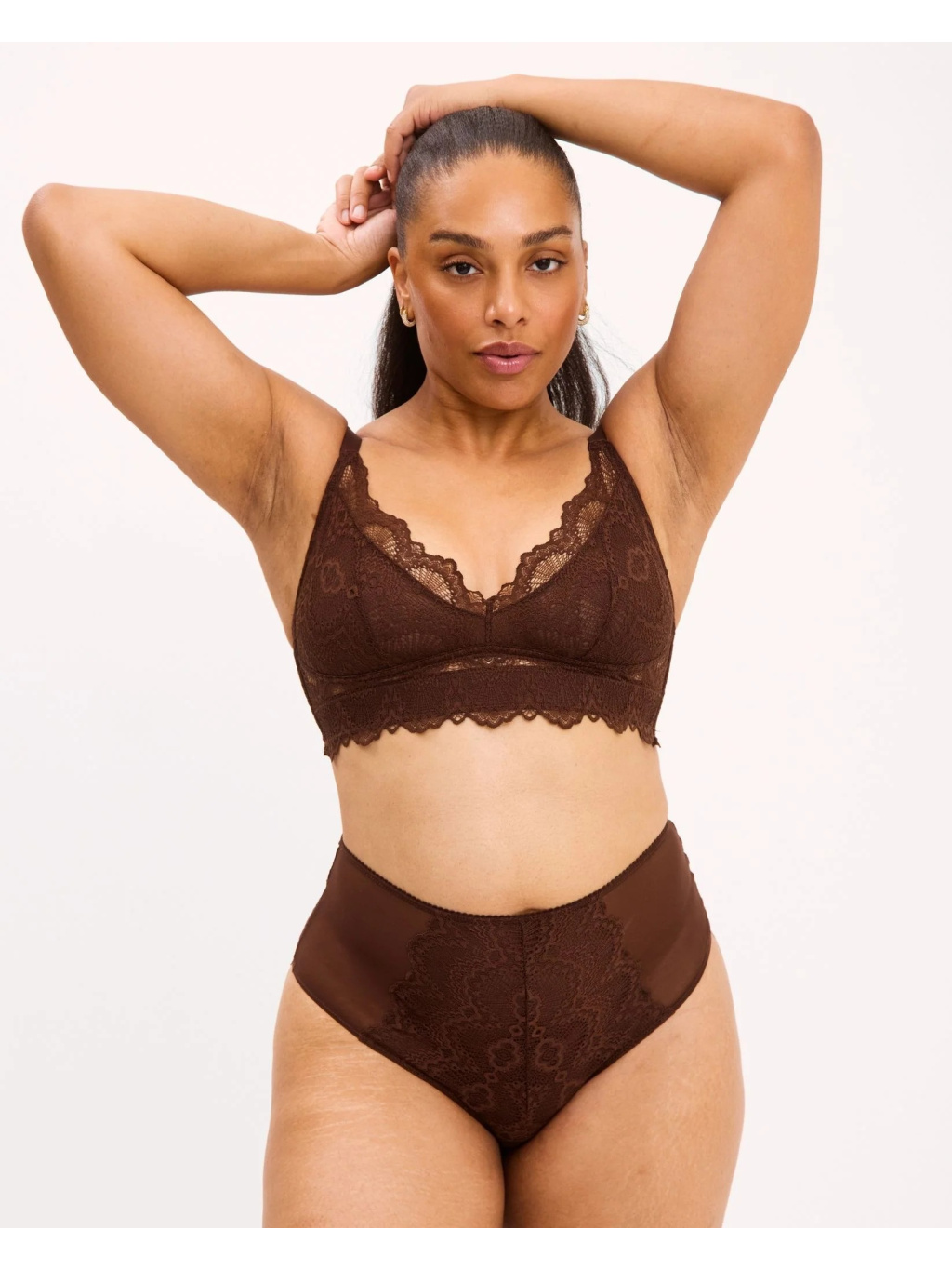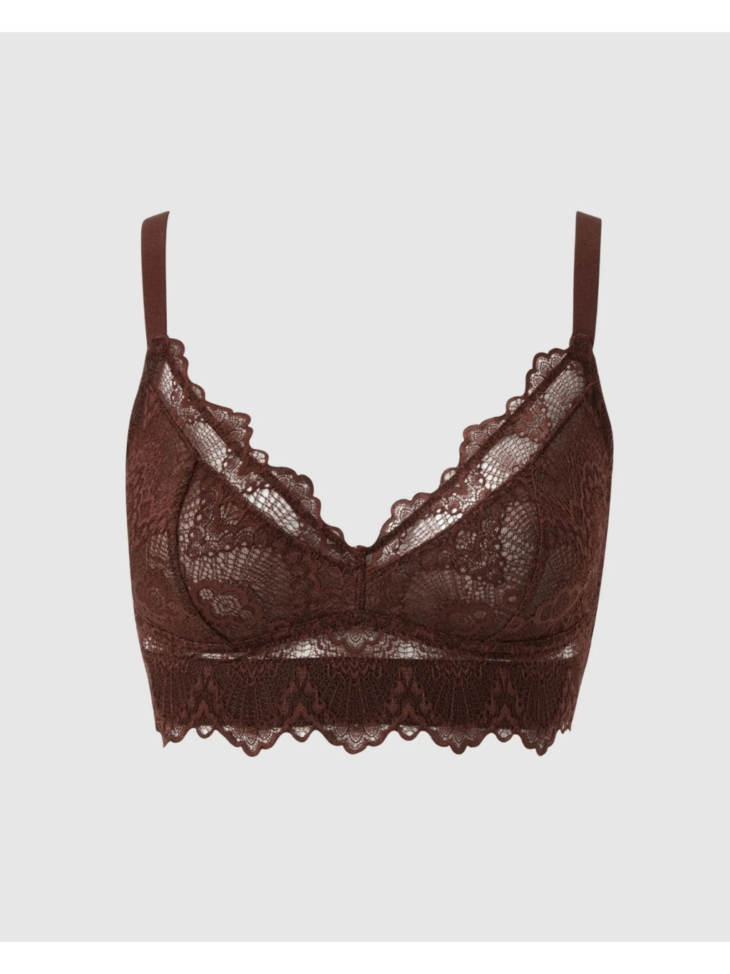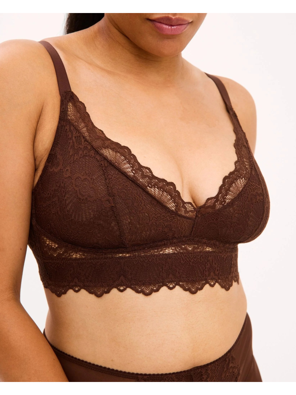 Smyslnost a podpora v dokonalé harmonii. Braletka Support+ v hlubokém čokoládovém odstínu kombinuje elegantní design s maximálním komfortem. Široký lem pod prsy a pevnější střih bez kostic poskytují spolehlivou oporu i pro plnější tvary, zatímco měkká a elastická krajka se dokonale přizpůsobí vaší siluetě. Nastavitelná ramínka a flexibilní obvod zajistí perfektní padnutí, a díky udržitelným materiálům a silikonovému štítku si můžete užít pocit luxusu a pohodlí po celý den.