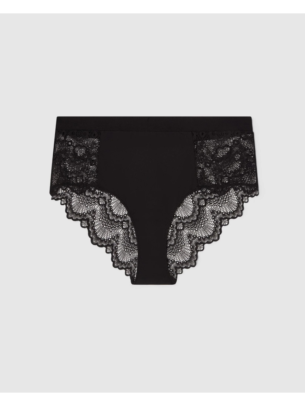 - Kalhotky s krajkovanými okraji kombinované s průsvitnou síťovinou