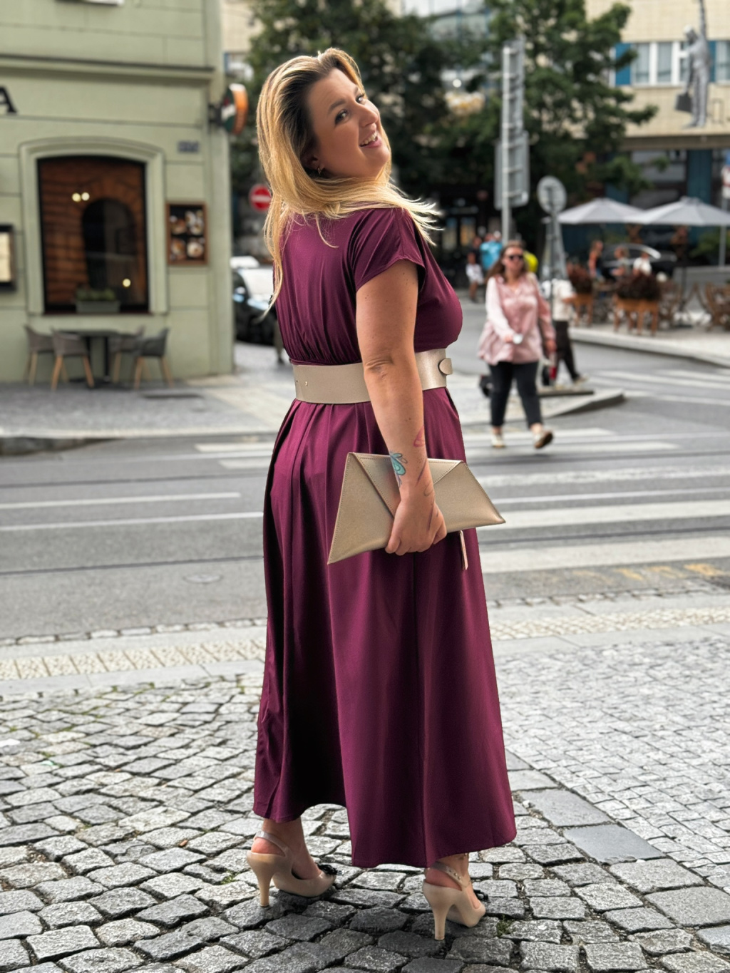 LEHKÉ ŠATY S VÁZÁNÍM LENA BURGHUNDY