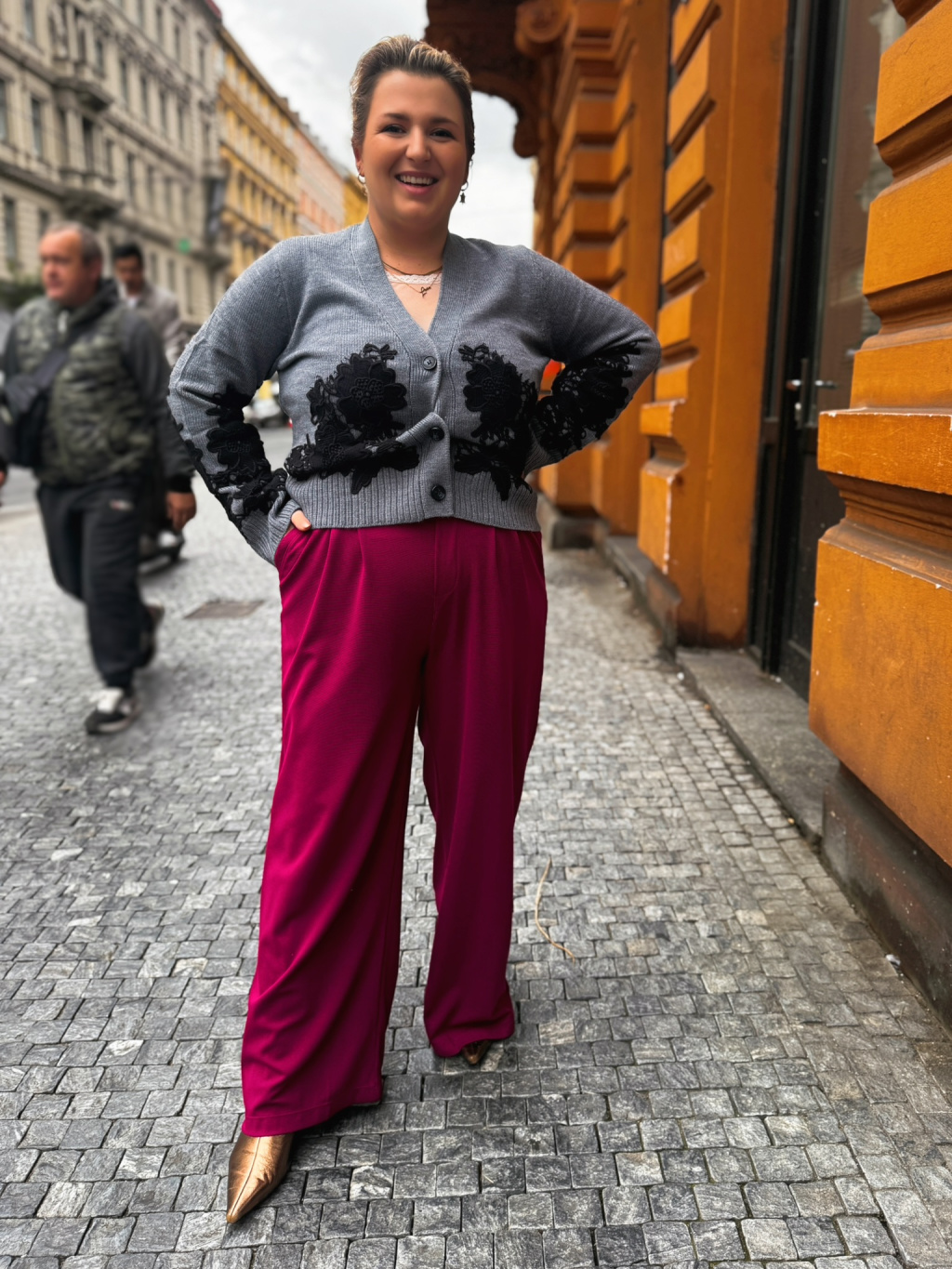 Kalhoty mají dlouhé volné nohavice a trendy širší střih, který teď doslova frčí. Skvěle vypadají s basic tričkem, crop topem i elegantnější halenkou. Vyber si mezi decentní šedivou, svěží švestkovou nebo zářivou royal blue a vytvoř si outfit, ve kterém se budeš cítit sebevědomě a v pohodě. Tyhle kalhoty si jednoduše zamiluješ – na každodenní nošení i stylové kombinace!
