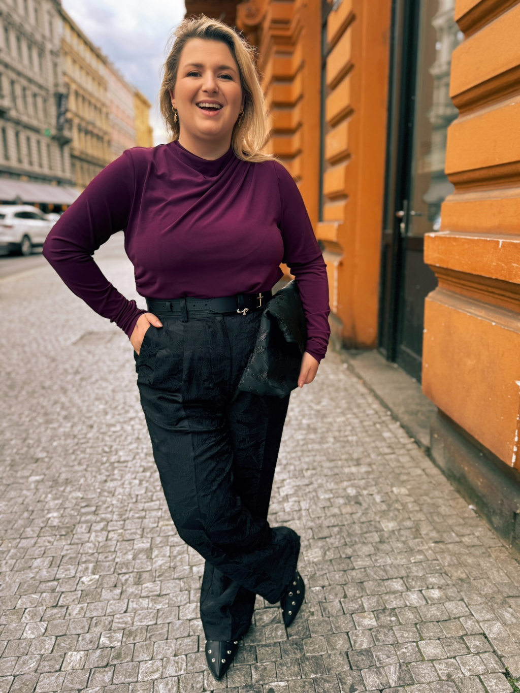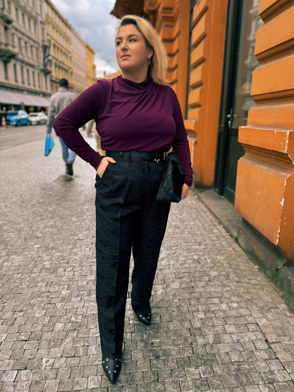 Žakárové kalhoty Perli jsou ideální volbou, pokud hledáš pohodlí a přitom chceš působit sofistikovaně – ať už v práci, nebo na večerní akci.