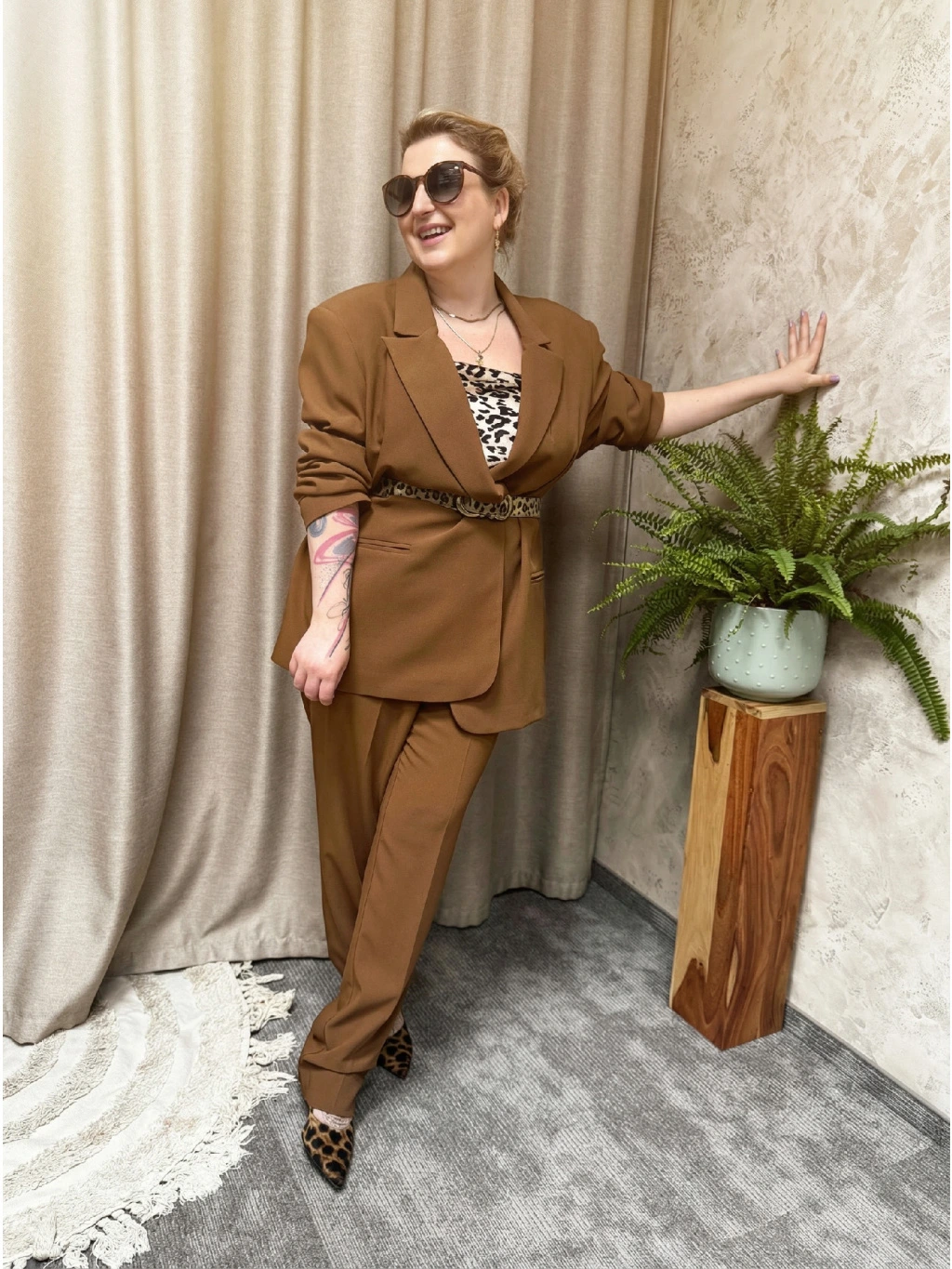 Tohle oversize sako v odstínu Cinnamon je výrazný, ale zároveň skvěle kombinovatelný kousek, který dodá outfitu sebevědomý, moderní charakter. Volnější, rovný střih působí uvolněně, nepřiléhá k tělu a krásně padá přes boky, takže je ideální i na vrstvení přes košile, topy nebo tenčí svetry. Jednořadé zapínání na jeden knoflík vytváří čistou, prodlužující linii a společně s klopami dodává modelu upravený, elegantní vzhled.