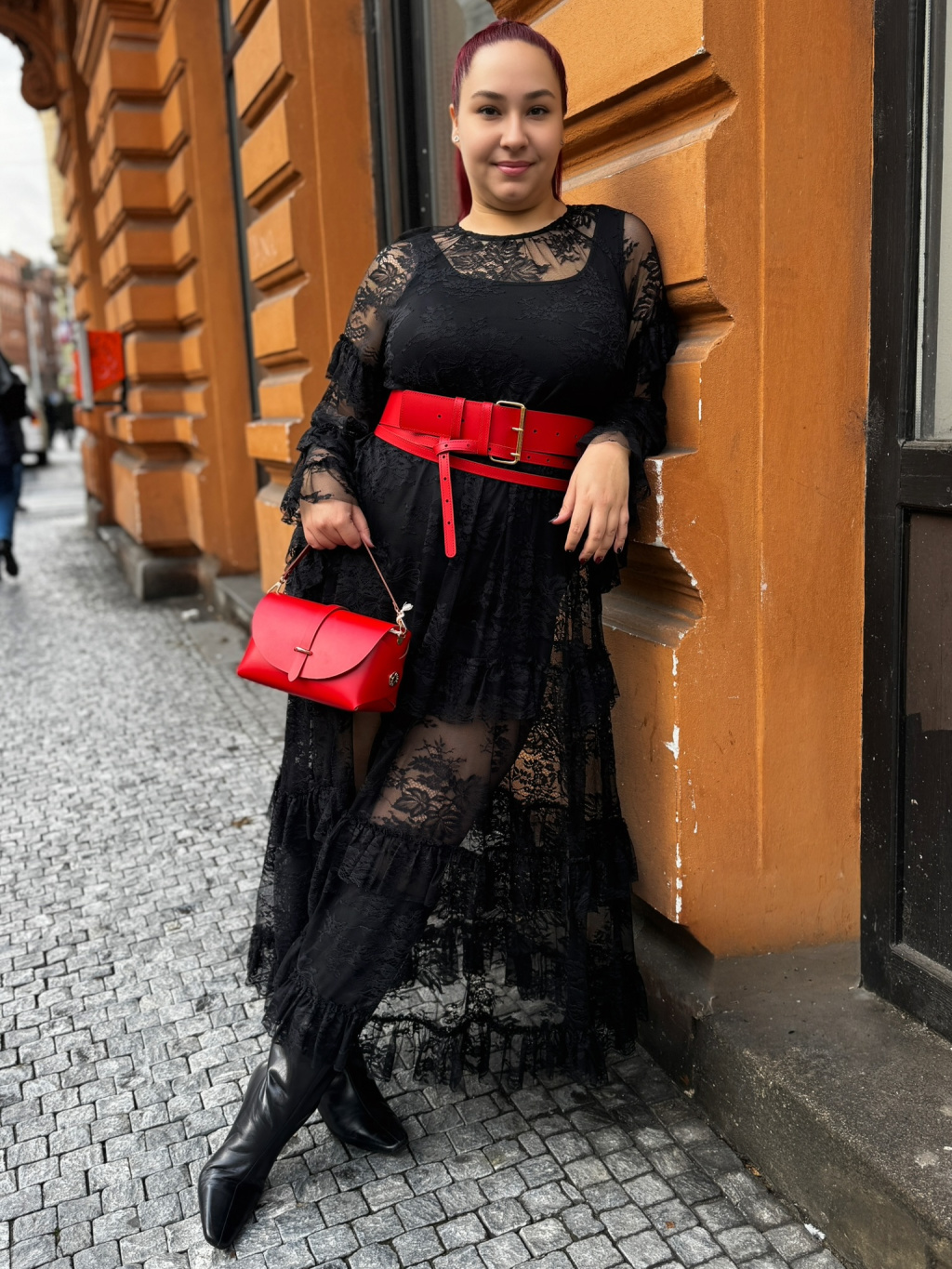 Tento styl vytváří jemný, ženský a hravý vzhled, který působí sofistikovaně a zároveň přirozeně. Pásek KLEIA se dokonale hodí k šatům, saku, svetru i delší košili – vždy krásně zvýrazní siluetu a dodá outfitu osobitý dotek.