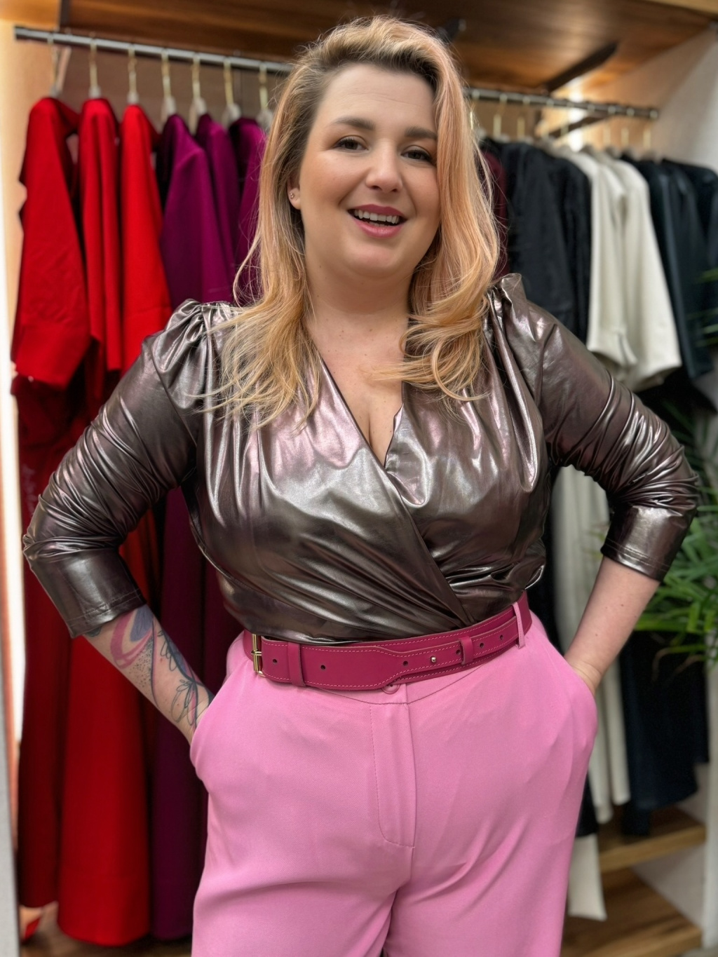 Metalické body Nela od značky Lévi zaujme na první pohled svým luxusním lesklým povrchem, který dodává outfitu výrazný a zároveň elegantní charakter. Zavinovací výstřih do V krásně zvýrazňuje dekolt a působí velmi žensky, aniž by byl příliš odhalený. Dlouhé rukávy z pružného materiálu zajišťují pohodlí při nošení a jemně kopírují linii paží.