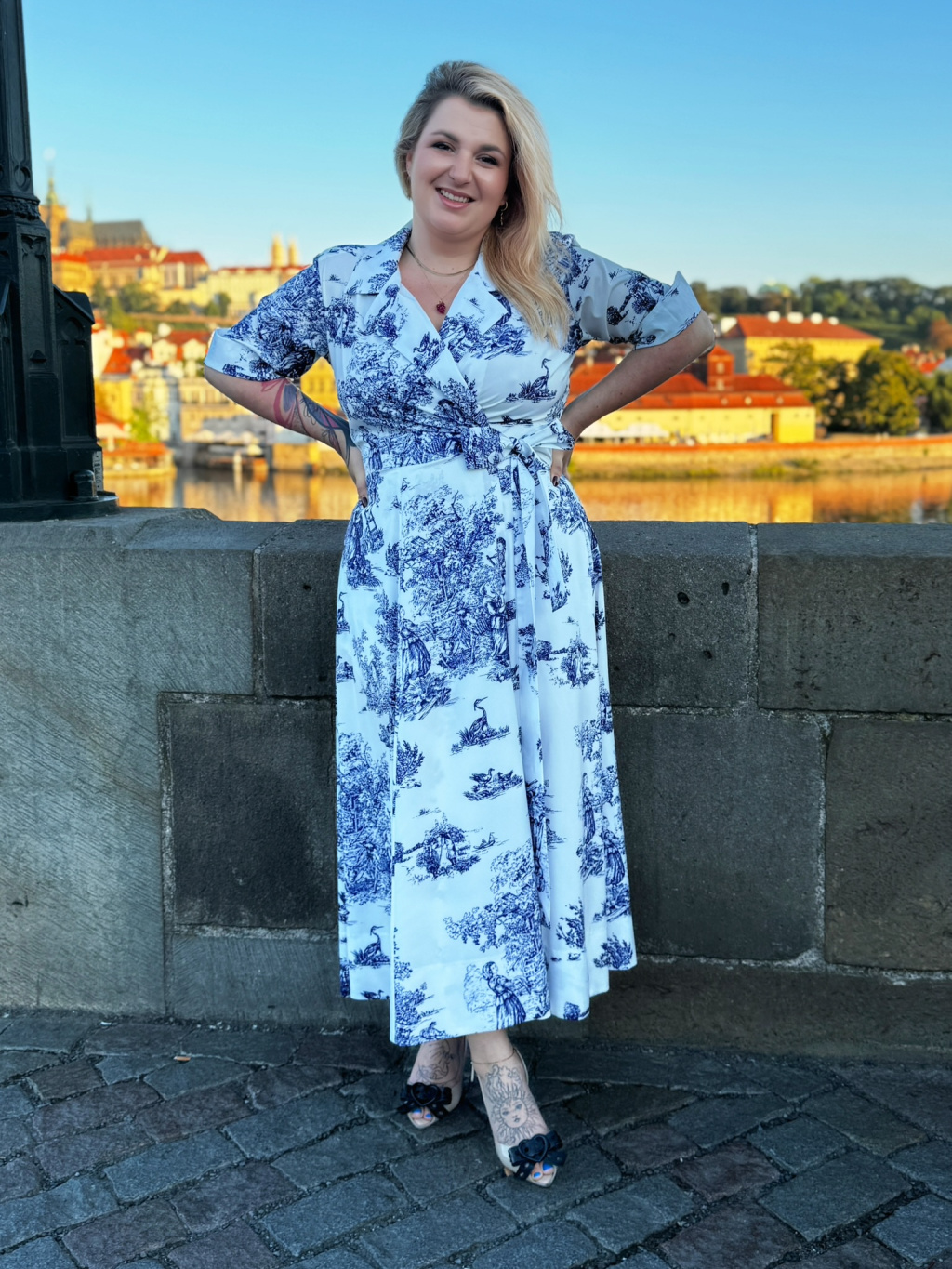 Praktičnost a styl: Díky kapsám a zavinovacímu střihu kombinují šaty Mirabel pohodlí s elegancí.