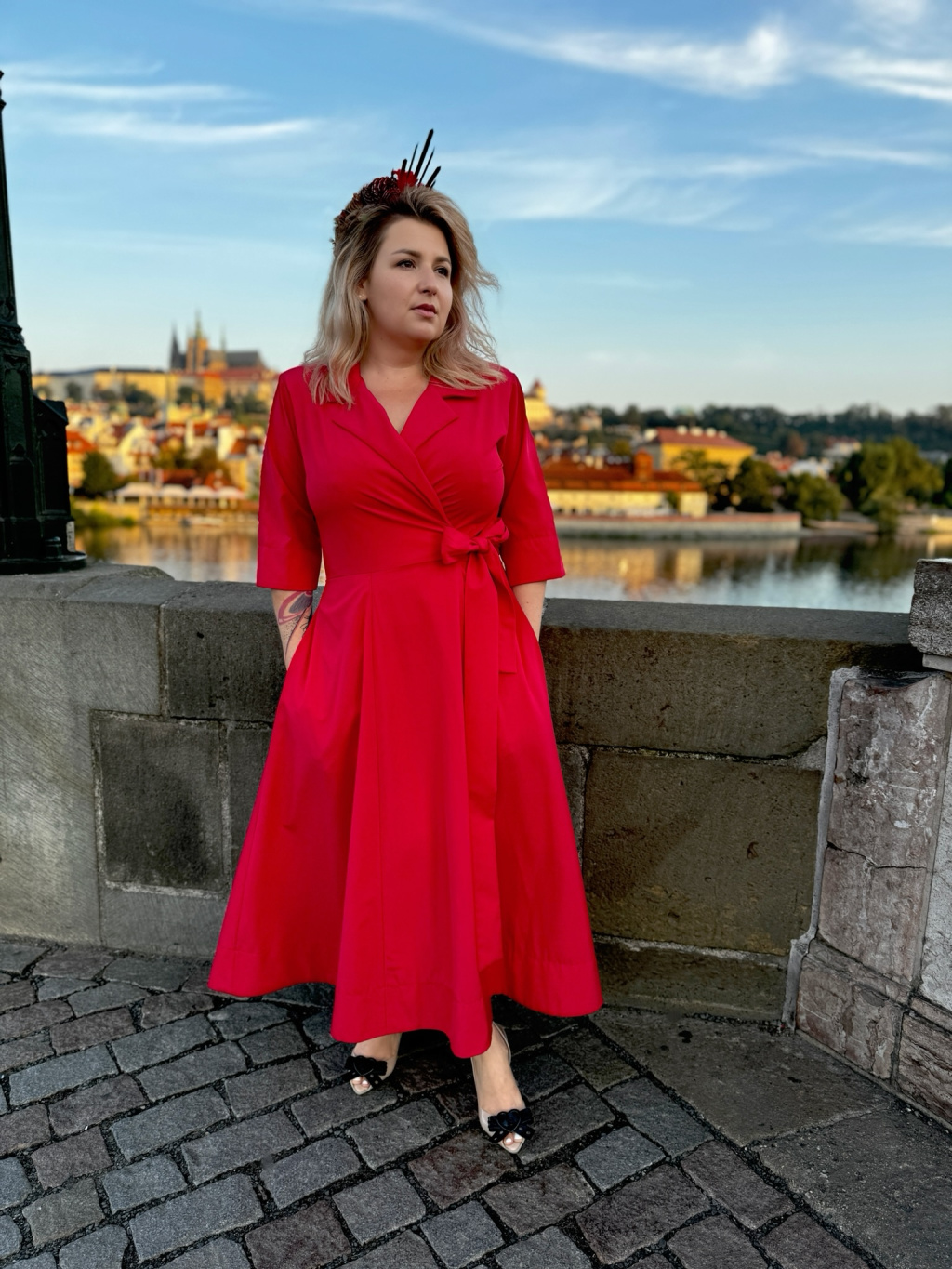 Praktičnost a styl: Díky kapsám a zavinovacímu střihu kombinují šaty Mirabel pohodlí s elegancí.