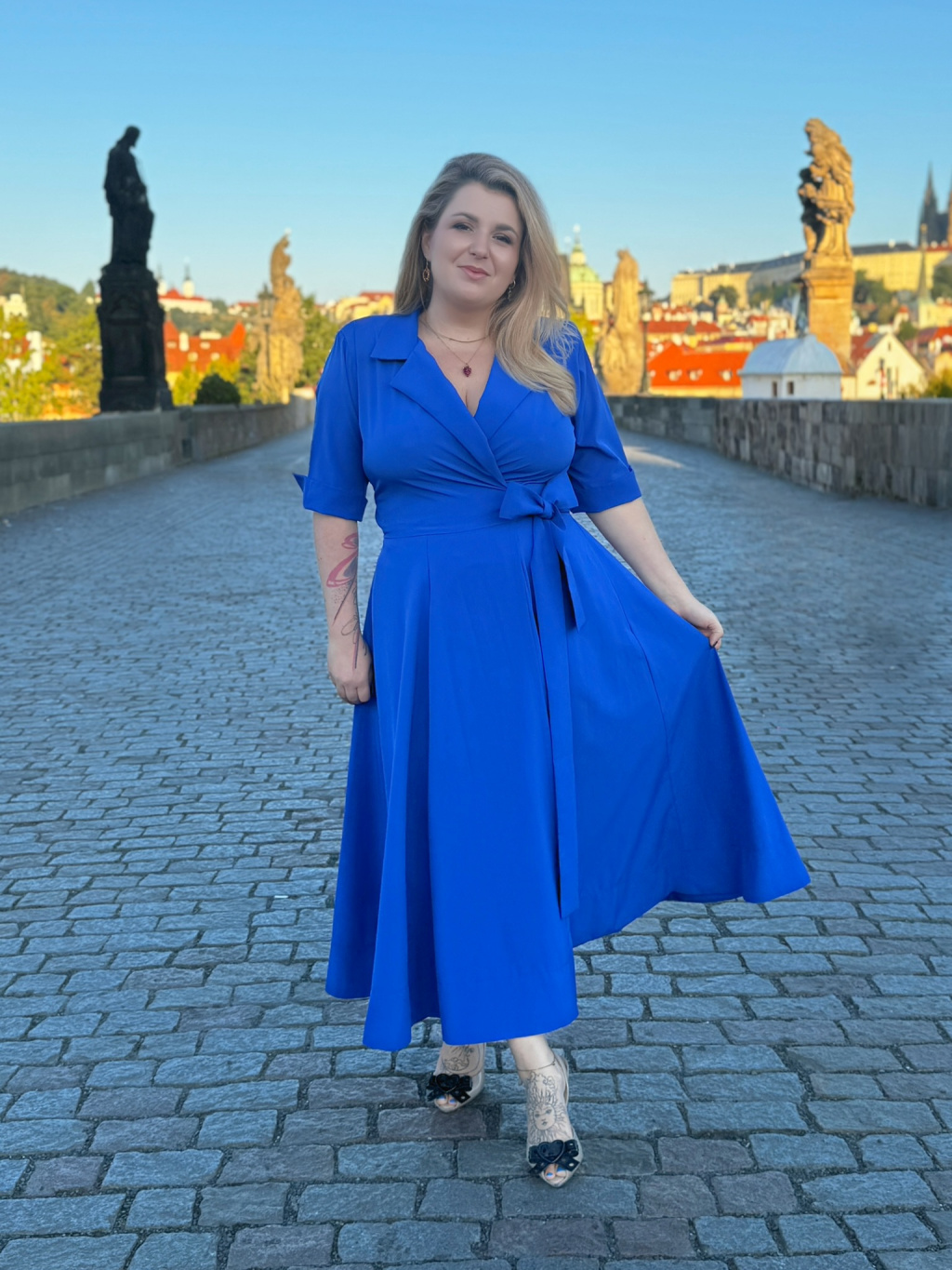 Praktičnost a styl: Díky kapsám a zavinovacímu střihu kombinují šaty Mirabel pohodlí s elegancí.